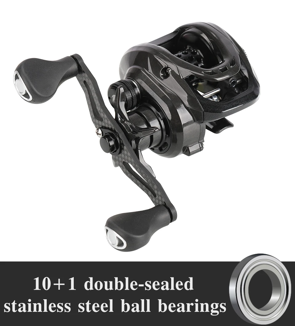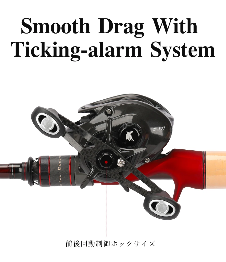 Характеристики продукта: 1. Супер прочная углеродная рама и боковая пластина 2. Ультра-светильник для более легкого литья 3. Прецизионные обработанные латунные шестерни 4. Направляющая конусной формы 5. 6-pin 30-положение регулируется центробежная тормозная система 6. Плавное сопротивление с тиккинг-сигнализацией 7. Легкая углеродная ручка и Углеродные шайбы 8. 10 + 1 двойные герметичные шариковые подшипники из нержавеющей стали (включая 2 NMB подшипники) Информация о продукте: 1. Название: Темный волк 100 2. Вес: 183 г 3. Передаточное отношение: 6,4: 1 4. Подшипники: 10 + 1 5. Максимум сопротивления: 7 кг 6. Вес приманки: 5-30 г 7. Тормозная система: центробежная тормозная система 8. Мощность линии: 0,235 мм/180 м 0,285 мм/120 м 9. Шпуля Вес: 17,5 г