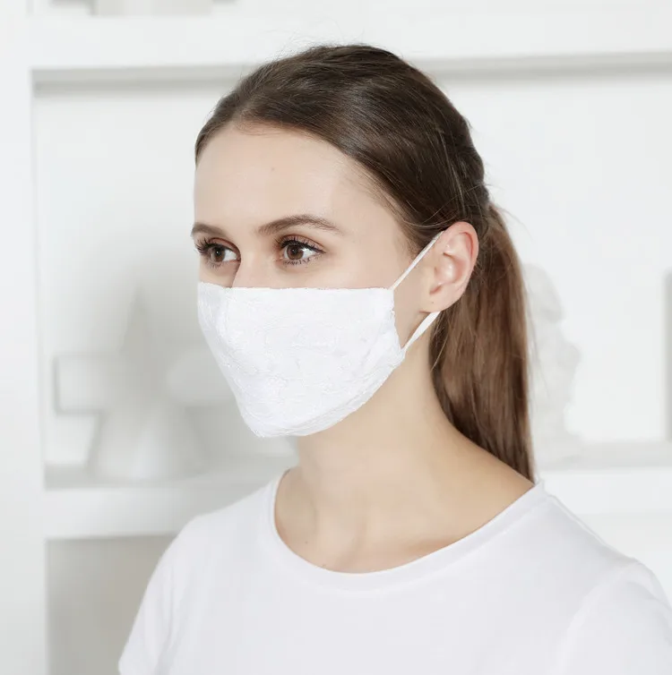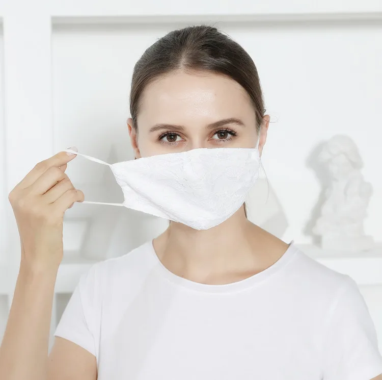 Летняя кружевная двухслойная дышащая тонкая хлопковая маска для женщин, Пыленепроницаемая ткань, маска для ушей