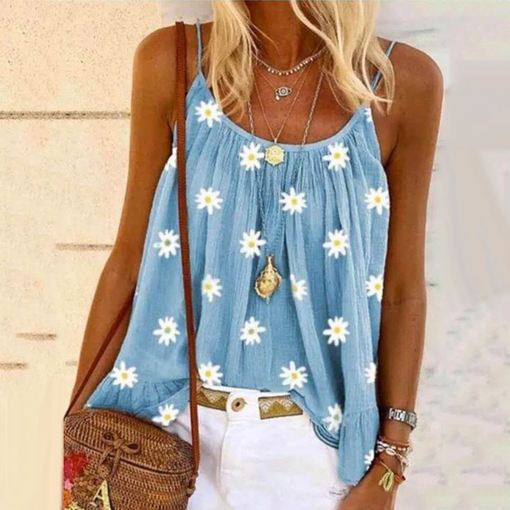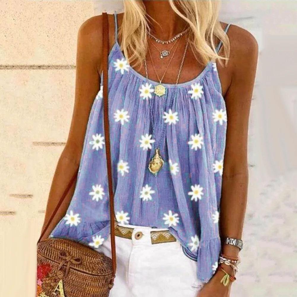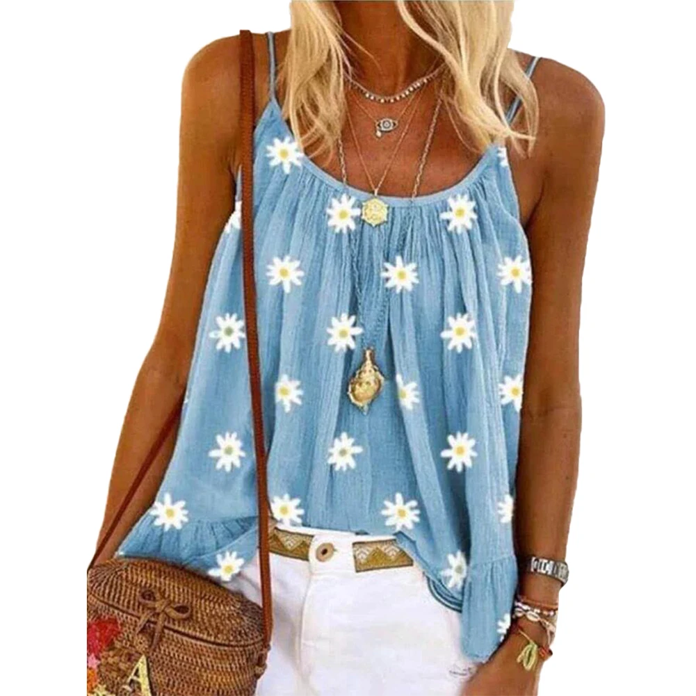Женская мода без рукавов Marguerite печати плиссированные камзол жилет Свободная блузка Топ