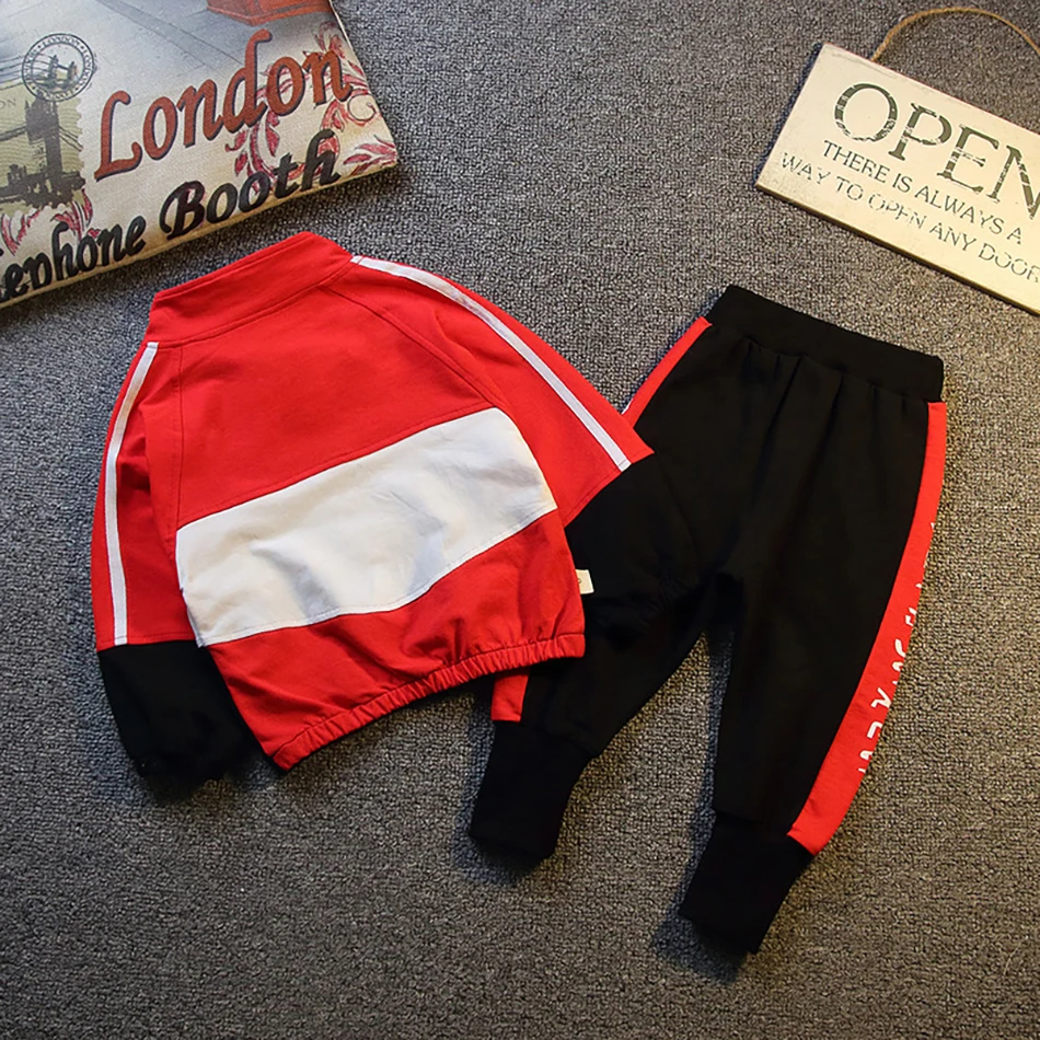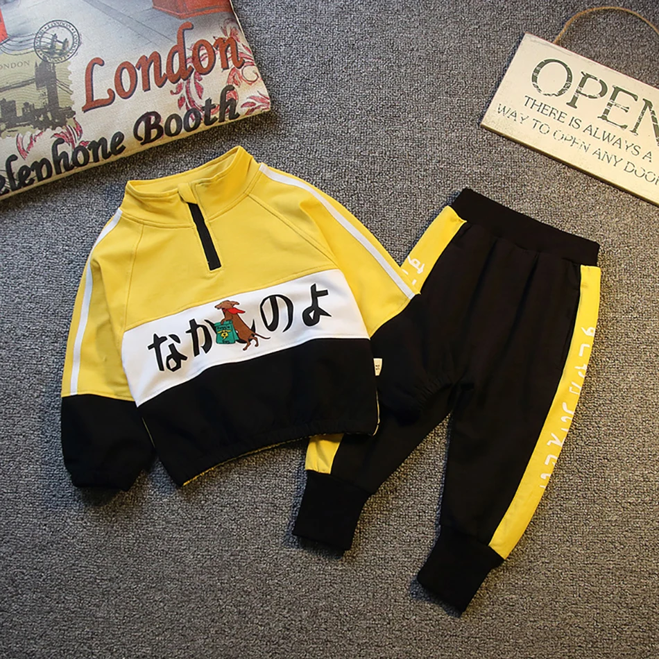 Весенне-Осенняя детская одежда для активного отдыха; Хлопковый костюм для маленьких мальчиков; Спортивный костюм с надписью; Куртка на молнии с карманами для мальчиков и девочек; Брюки; 2 шт./компл.
