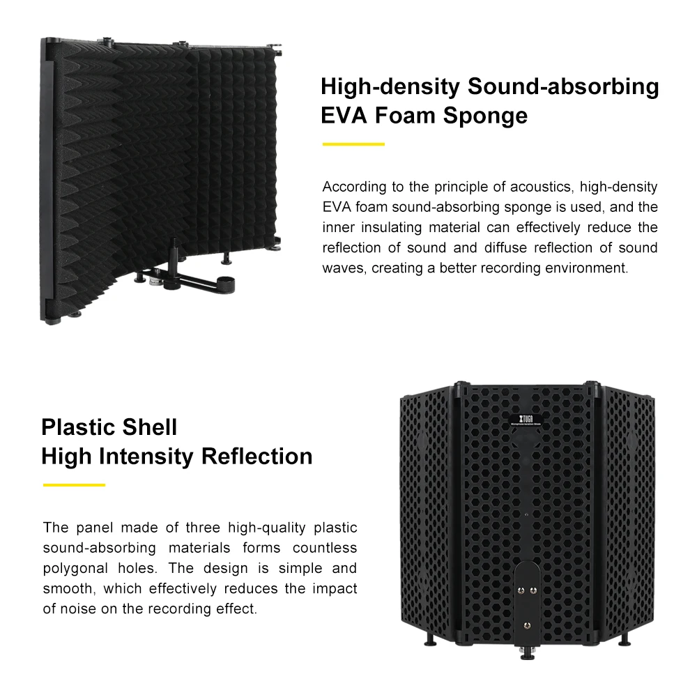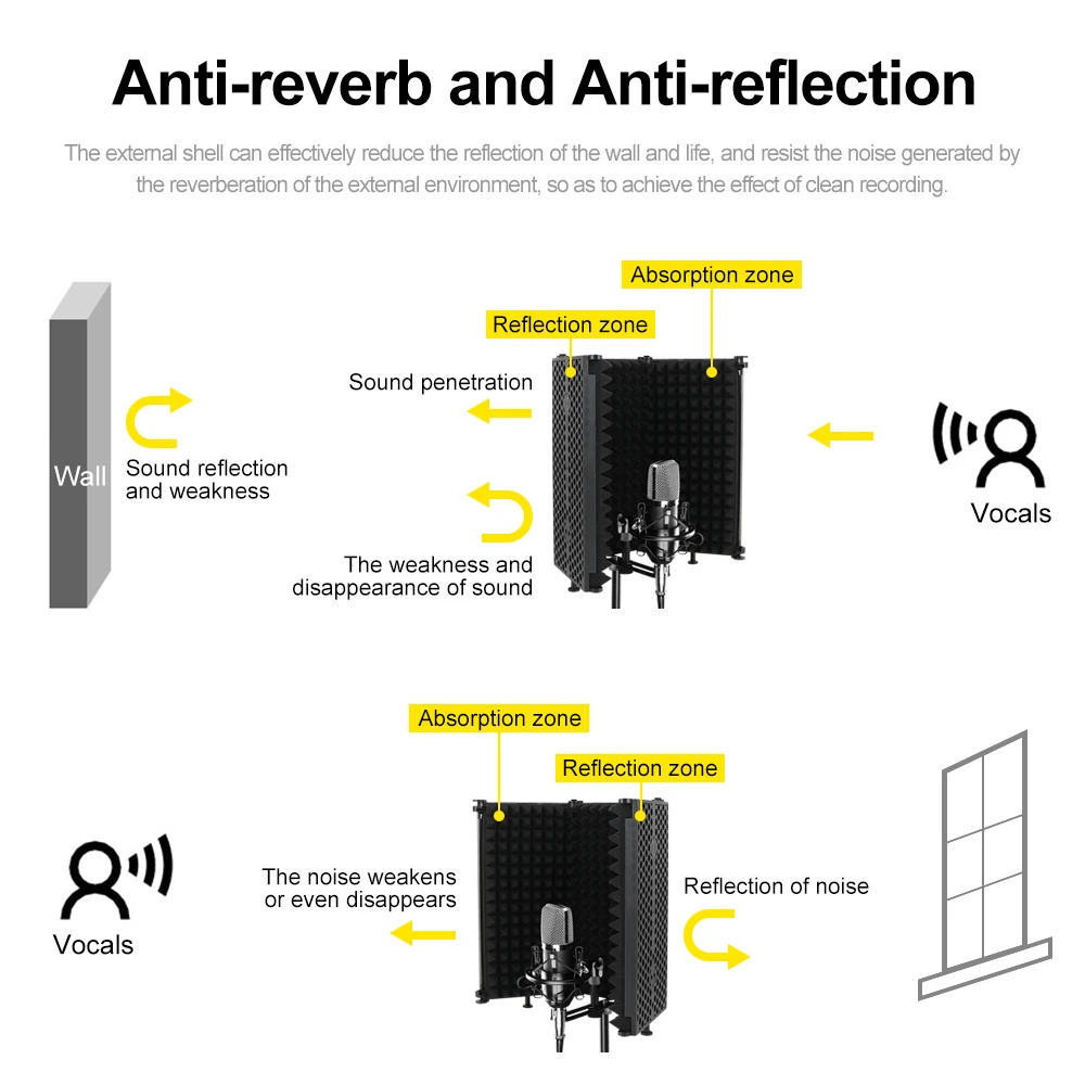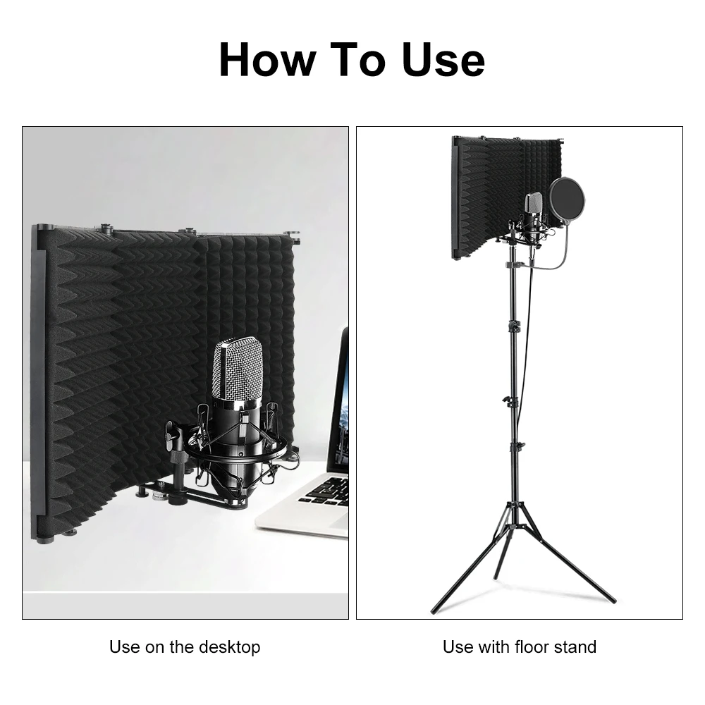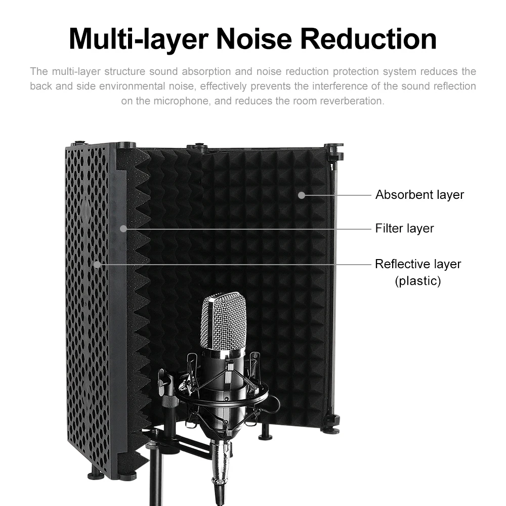 1. Устранение помех: высококачественная акустическая Звукопоглощающая поролоновая звукоизоляция уменьшает шум и атмосферу комнаты, чтобы создать оптимальное состояние записи во многих ситуациях.2. Гибкость и удобство: брюки для детей на 3, панель конструктивные особенности 2 складные боковые части, как правило, разрешается, регулировки угла наклона, что дает вам оптимальную; Избегайте воздействия прямых солнечных лучей. Компактный дизайн, легкая конструкция, а также плавность позволяют легко носить с собой и брать с собой куда угодно.3. Простота в использовании: изоляционный щит микрофона может быть закреплен на столе или столешнице, а также может быть установлен на подставке для микрофона. Идеально подходит для профессиональной голосовой/акустической записи и подкачки звукового стенда.4. Нескользящие устойчивые ножки: предотвращают скольжение, и весь стенд крепится к вашей подставке для микрофона с прочной системой зажима.5. Резьбовое крепление микрофона: обеспечивает дополнительную защиту и стабильность при использовании в настольном режимеПримечание:Подставка для микрофона и наушники в комплект не входят.Посылка включает в себя:1 шт. x Микрофон изоляционный щит1 шт. х перекладина1 шт. х шатун1 шт. x шайба1 шт. х Соединительная гайка