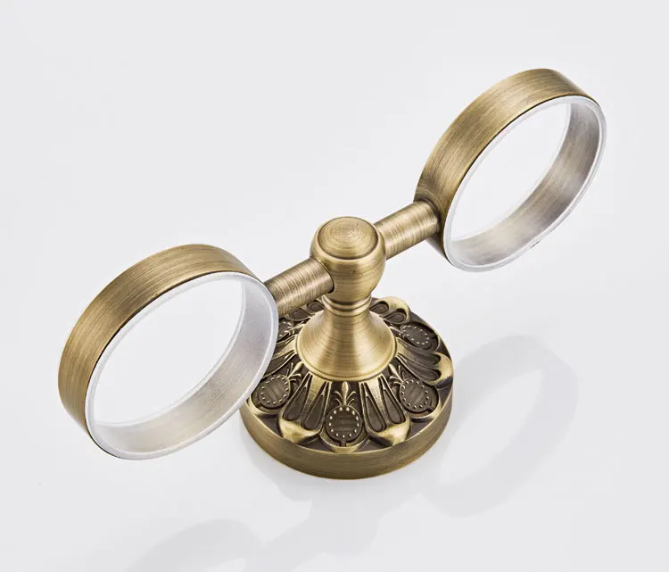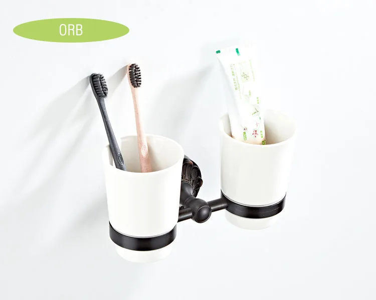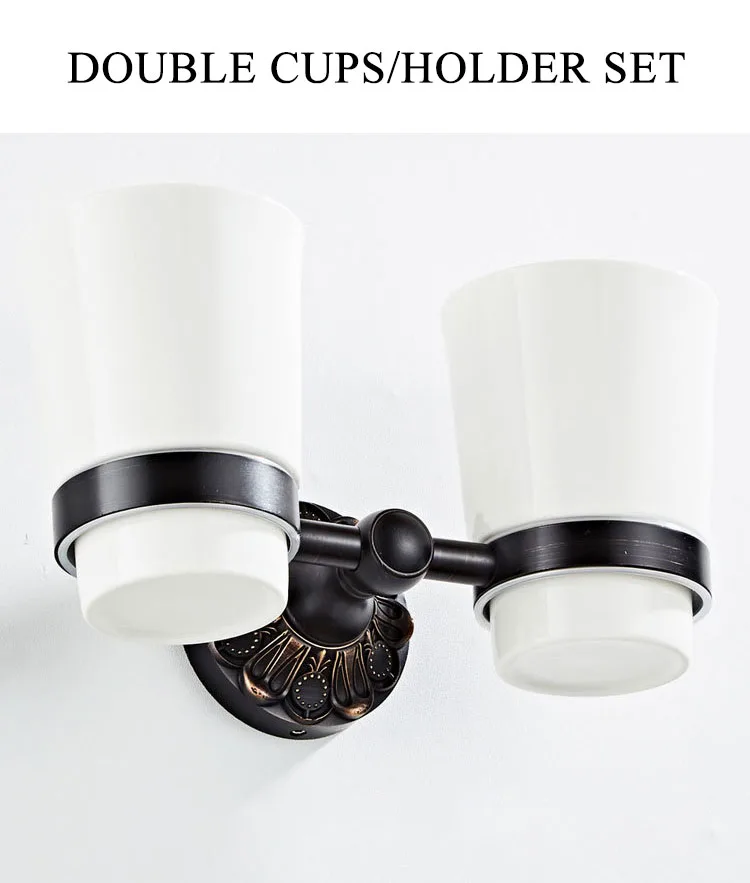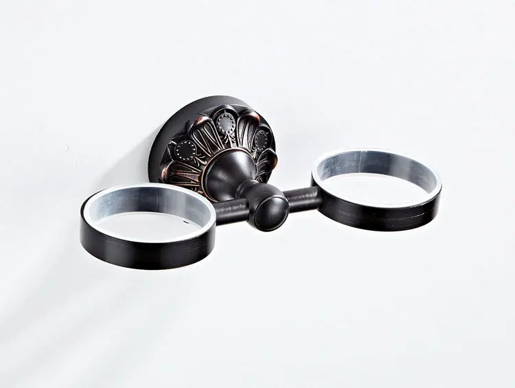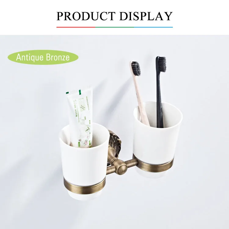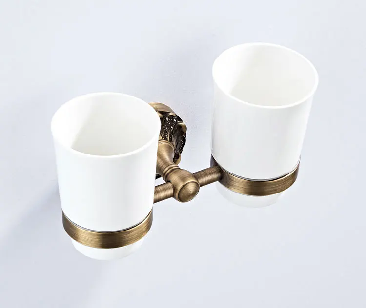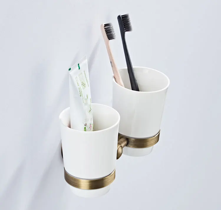 Античная бронзовая кружка, держатель для стакана, черная подставка для кружек, латунные Двойные керамические стаканчики, настенный держатель для зубной щетки для ванной комнаты