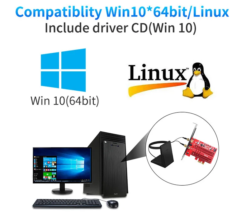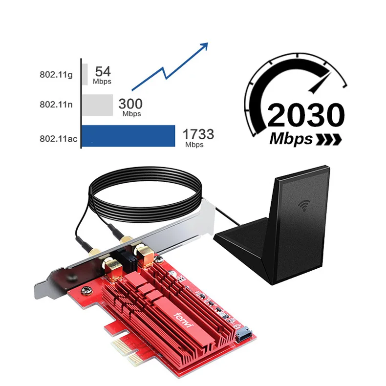 Бренд: derapid Модель: FV-AC2030T Chipest: Intel 9260 Chipest Стандартный IEEE: 802.11ac С Blutetooth 5,0 Двухдиапазонный 2,4 ГГц-300 Мбит/с/5Ghz-1730Mbps Поддержка MU-MIMO Примечание: скорость до 1730 Мбит/с (маршрутизатор должен быть на 160 МГц) Операционные системы: поддерживает только Windows 10*64 бит Совместимость с: почти компьютером с PCI Express (разъем PCI-E 1X/4X/16X) Антенна: свернутая направленная антенна