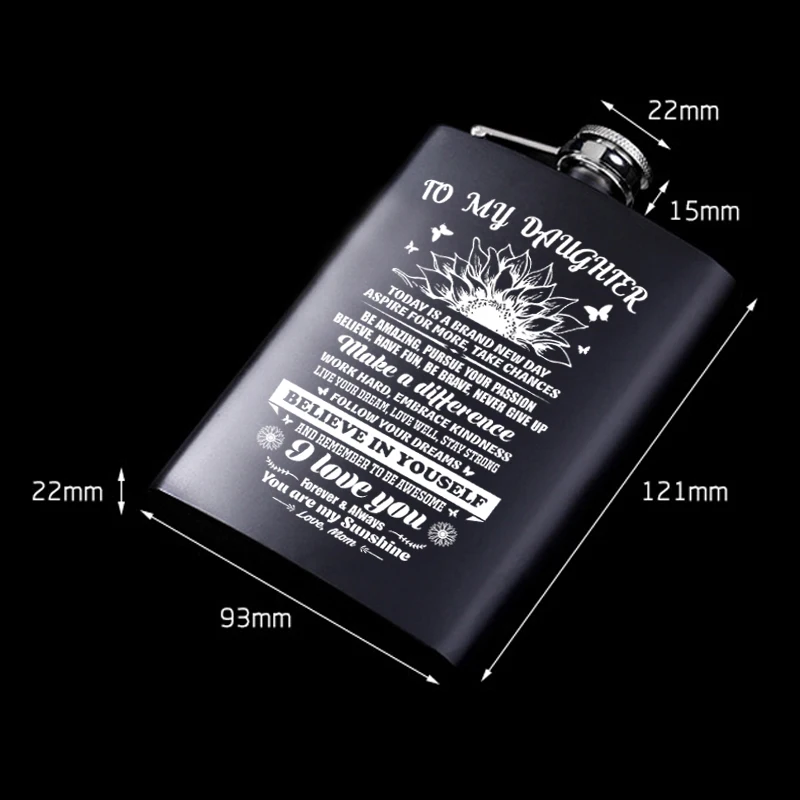 Вы ищете уникальный подарок для вашей любви? Не смотрите дальше! Гравюрный Флагон идеален! Подарок, который он будет ценить на всю жизнь! Это Флагон с значимым сообщением, напечатанным на поверхности флагона, который помогает ему длиться навсегда. 1 унция = 28,35 г = 16 драм = 29,5 мл Характеристика: Материал: нержавеющая сталь 304 Емкость: 8 унций Вес: один 130 г (набор 320 г) Посылка включает в себя: 1 фляга для бедер