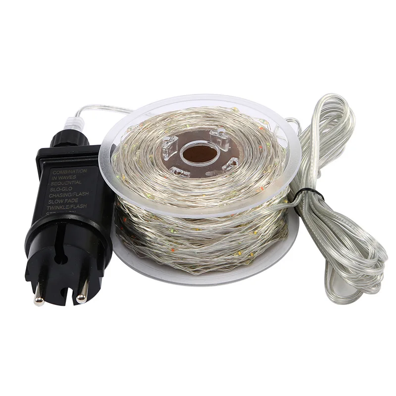 Название: светодиодная гирлянда Размер: 20 м; 50 м; 100 м Количество светодиодов: 200 светодиодов; 500 светодиодов; 1000 светодиодов Цвет свечения: белый; Теплый белый; Цветной режим: восемь режимов работы мощность: штепсельная вилка европейского стандарта Водонепроницаемость: Да Применение: Рождество, День Святого Валентина, Свадебные вечерние украшения