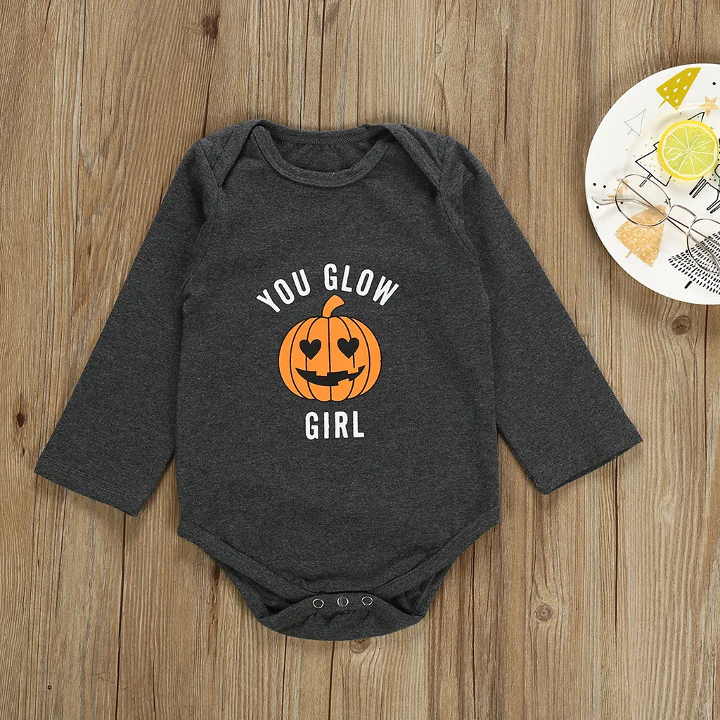 Одежда для маленьких девочек; Боди для малышей; Боди для маленьких девочек с длинными рукавами и принтом тыквы; Ромпер на Хэллоуин; Хлопковая одежда