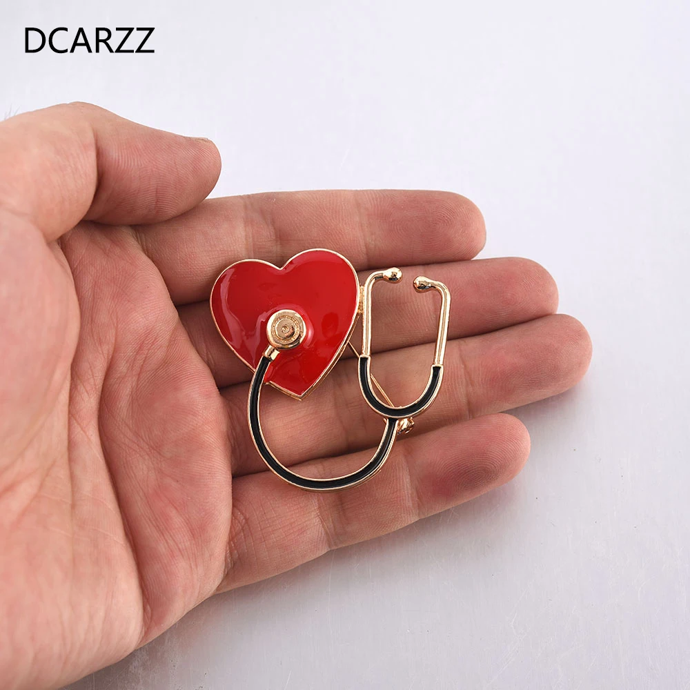 DCARZZ Stethoscope Brooches Gold Gift Doctor Nurse Medical Pin Romantic Jewelry Party Black Enamel Lapel Pins Metal Women Gift