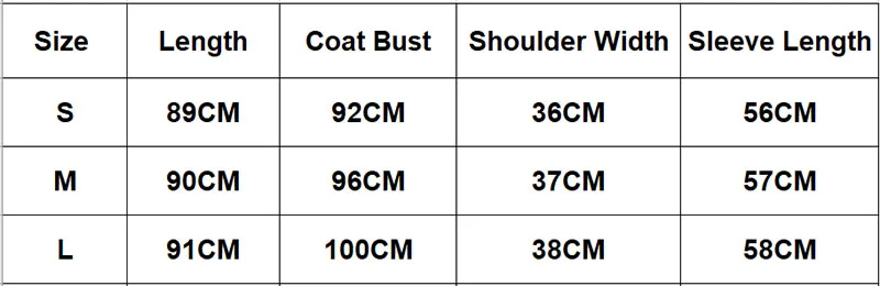 Таблица размеров