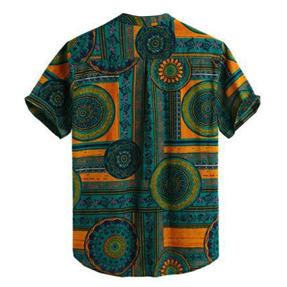Летняя мужская цветная рубашка с этническим геометрическим принтом и короткими рукавами на пуговицах