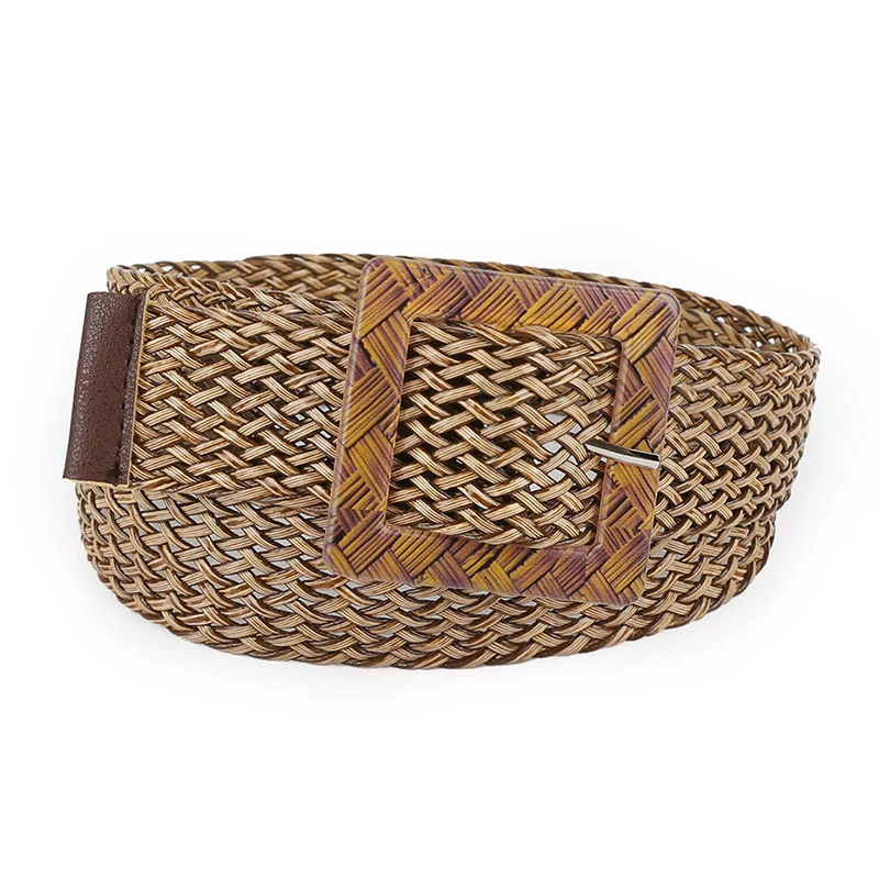 Винтажный дышащий женский ремень в стиле бохо с круглой квадратной пряжкой, декоративный широкий ремень, плетеный ремень из искусственной соломы, вязаный 1 шт.