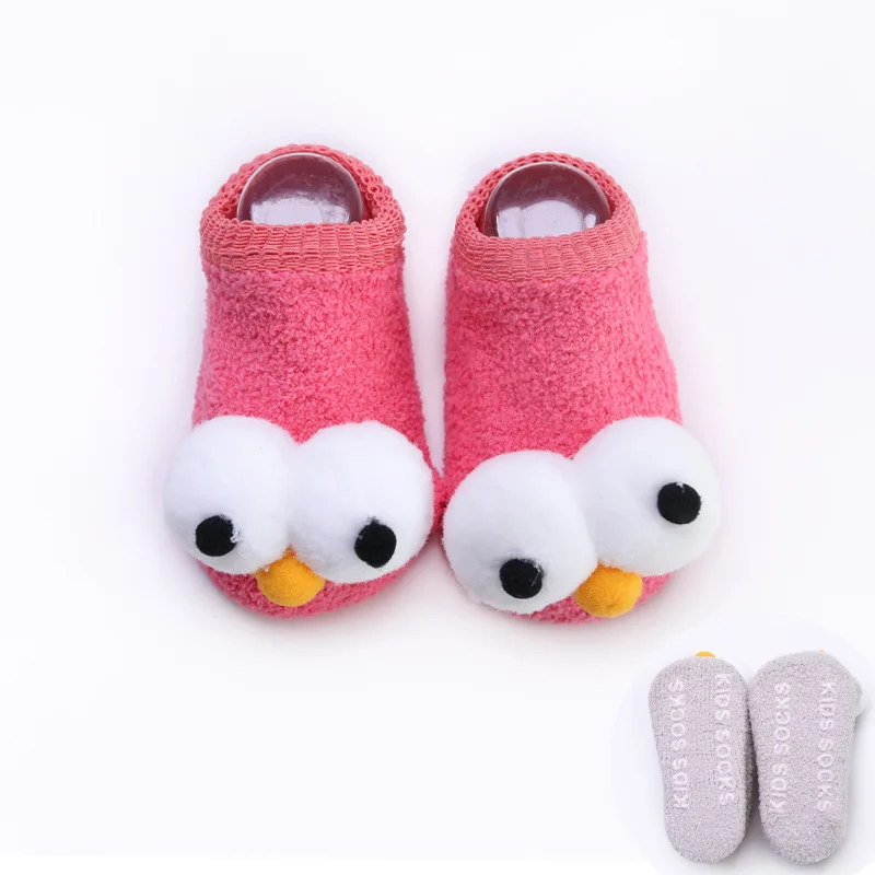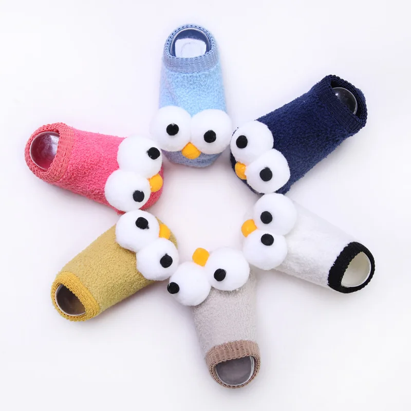 Новые милые детские носки для новорожденных 6 цветов, хлопковые зимние теплые носки-тапочки с рисунком Больших Глаз, одежда детские От 0 до 3 лет для мальчиков и девочек