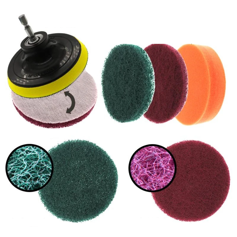 ** Красные и зеленые скрабы: зеленые подушечки немного жестче и толще, чем красные. Красные Подушечки достаточно абразивны, чтобы очень эффективно очистить вашу ванную комнату или кухонный пол.