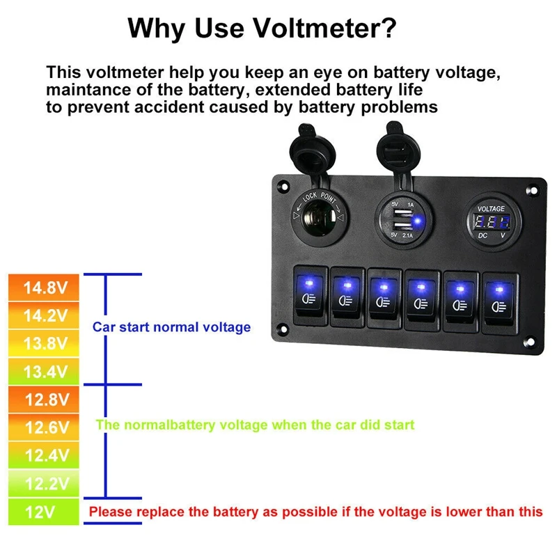 6 панель переключателя с синим светодиодный светильник, обеспечивает включение или выключение в ночное время.