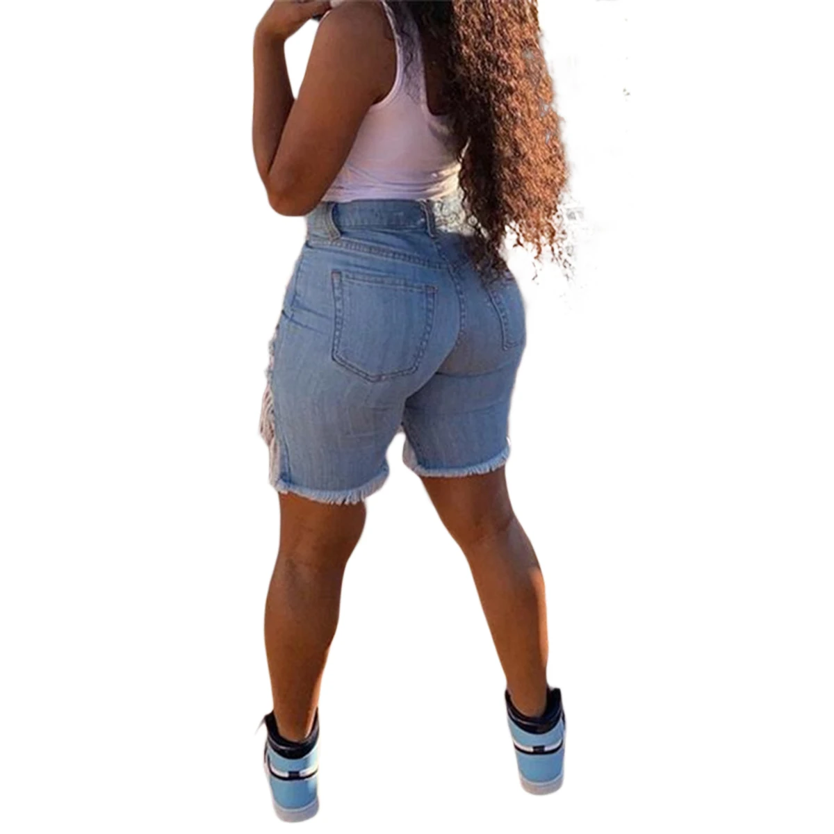 Женские потертые джинсовые шорты, стильные потертые короткие джинсы со средней посадкой и необработанным низом с подъемом. Особенности: мягкая ткань дарит ощущение прохлады. Модный крой делает вас уверенным и очаровательным. -- Ручная стирка в холодной воде, не отбеливать, рекомендуется сушить в подвешенном состоянии. -- Пожалуйста, внимательно выбирайте из нашей информации о размерах ниже.
