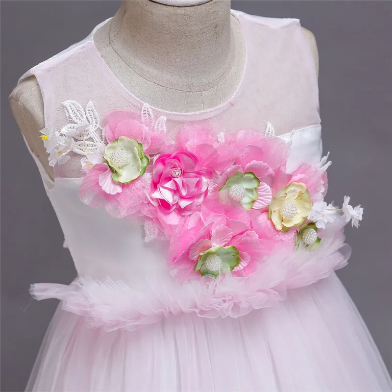 От 3 до 14 лет высококачественное свадебное платье с цветочным узором для девочек одежда подружки невесты Платья принцессы белые вечерние платья из тюля для девочек-подростков