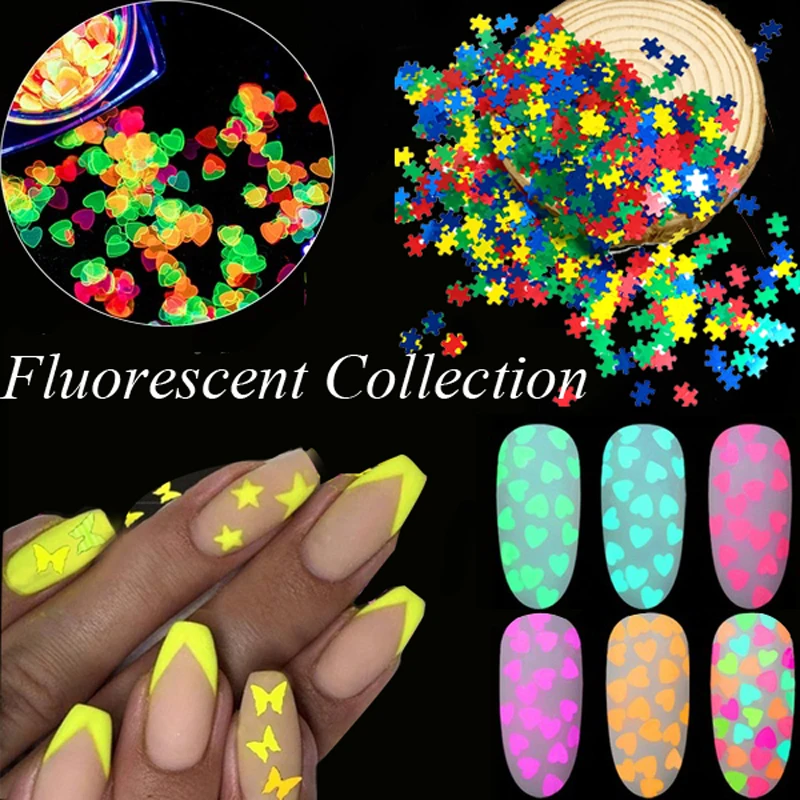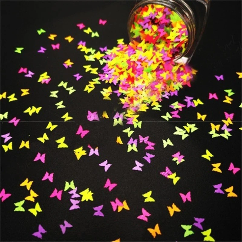 4 мм дизайн ногтей * головоломка * Смешанные неоновые Пазлы формы бабочки дизайн тумблер блеск флуоресцентная чешуйчатая коллекция PD13-126