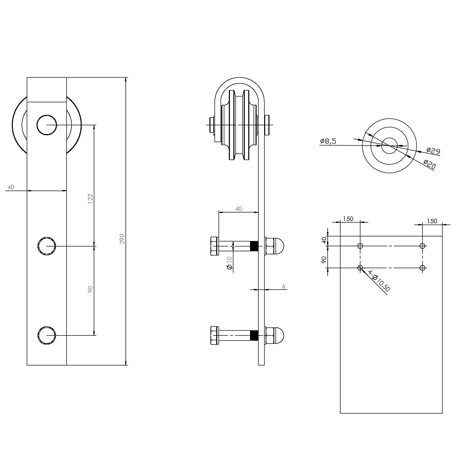 Посылка включает в себя: 2 * подвесные ролики, 4 * длинный дверной винт.