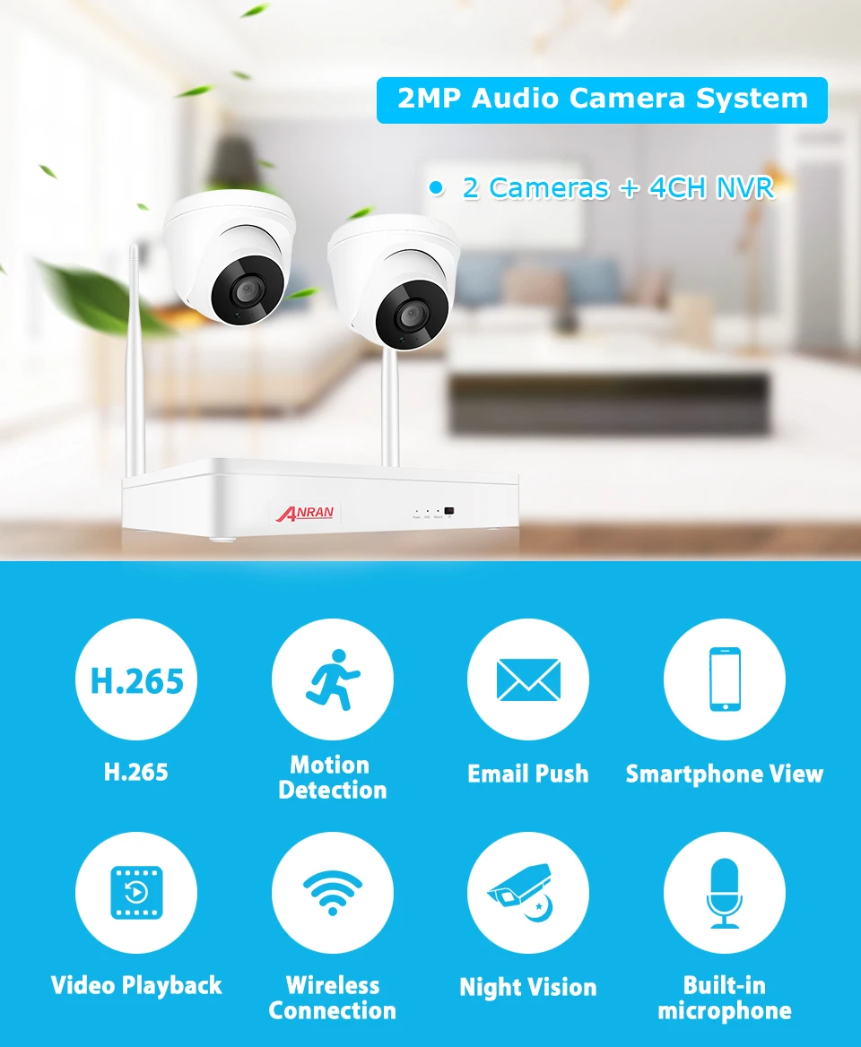 · 4 CH 1080P Беспроводной NVR · Встроенный Wi-Fi роутер NVR, пропускная способность · Поддержка просмотра видео/записи/воспроизведения/резервного копирования USB · Поддержка Android/IOS/Pad/PC удаленного просмотра · Сетевой протокол: UPNP, SMTP, PPPOE, DHCP и т. д. · Получайте мгновенные оповещения по электронной почте при обнаружении движения · 1 SATA Порты и разъёмы, до 4-х никель-металл-ТБ каждого (2,5 дюймов) 1 взаимный обмен данными между компьютером и периферийными устройствами 2,0 Порты и разъёмы · Источник питания: 12 В постоянного тока