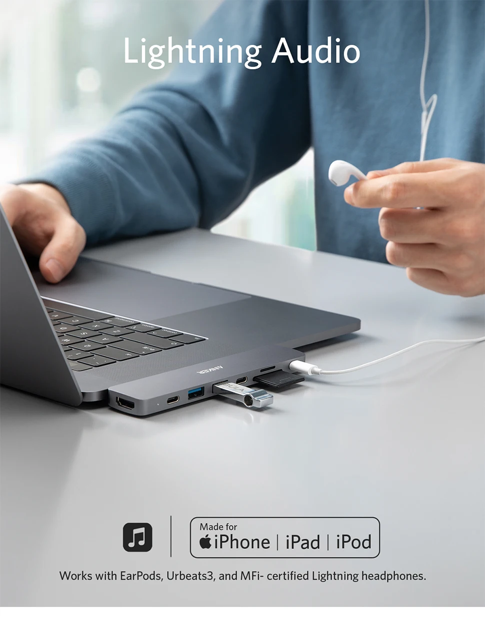 1 microSD card slot, and a Lightning audio port—all from one ultra-compact hub.