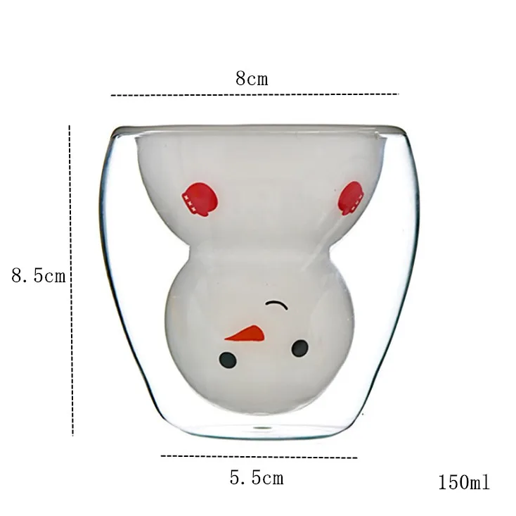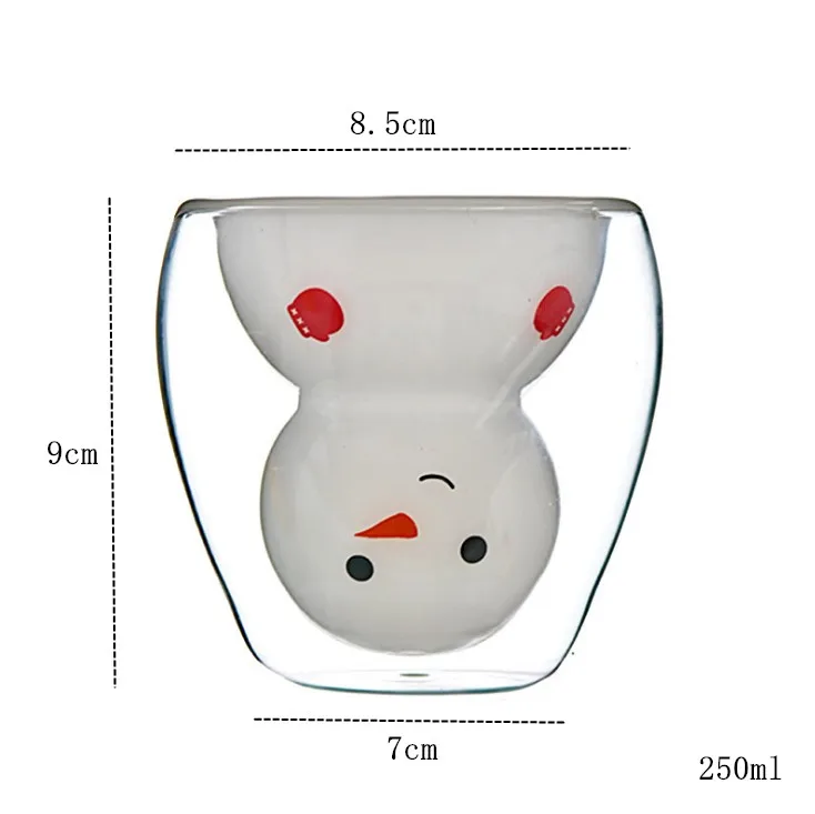 Особенности: Материал: высококачественное стекло Ёмкость: 250 мл Размер снеговика 2: 150 мл, 250 мл Высота: 9 см Чашка Диаметр: 8,5 см Снеговик 150 мл: 8.5x8x5.5см