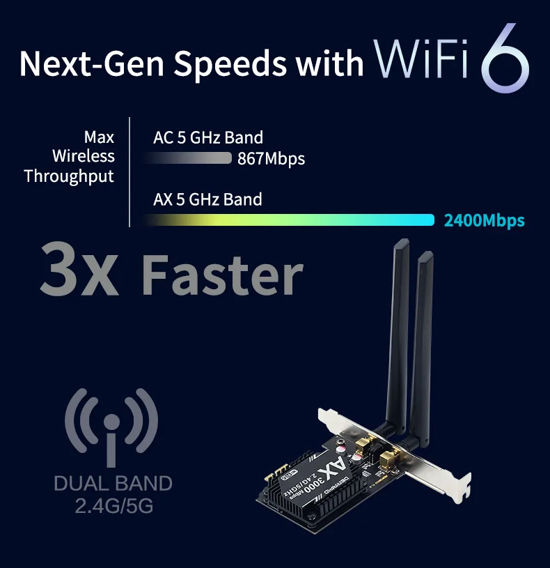 3000 Мбит/с двухдиапазонный 2,4G/5G Wifi 6 Bluetooth 5,0 PCI Express Wifi адаптер Сетевая карта 802.11ax для настольных ПК