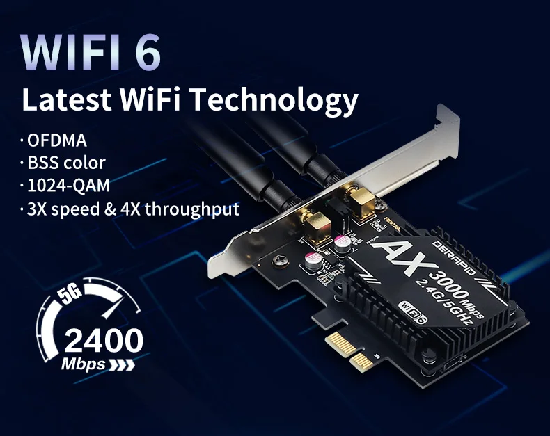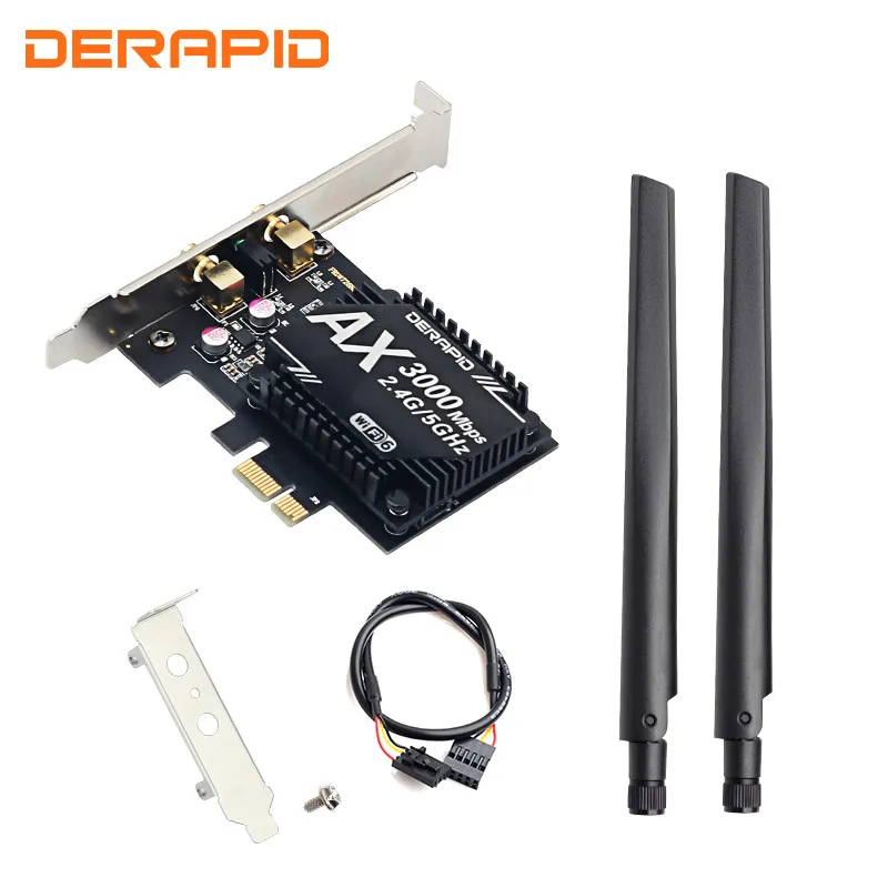 Бренд: derapid Chipest: Intel AX200 Chipest Стандарт IEEE: 802.11ac/ax С Blutetooth 5,0 Двухдиапазонный 2,4 ГГц-574 Мбит/с/5Ghz-2400Mbps Поддержка MU-MIMO Примечание: скорость до 2400 Мбит/с (маршрутизатор должен поддерживать 802.11ax) Операционные системы: поддерживает только Windows 10*64 бит Совместимость с: почти компьютером с PCI Express (разъем PCI-E 1X/4X/16X)