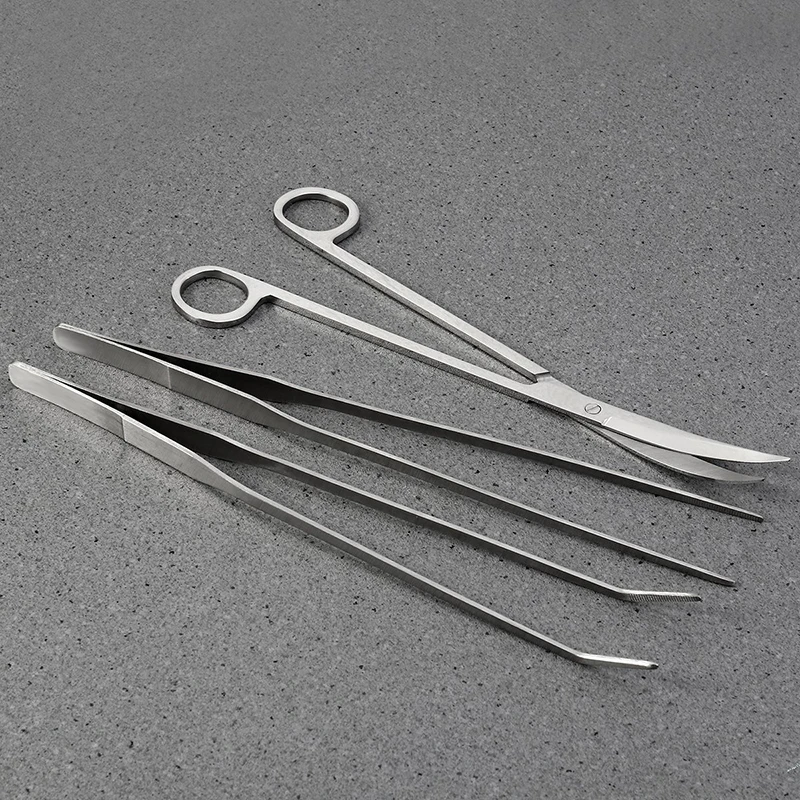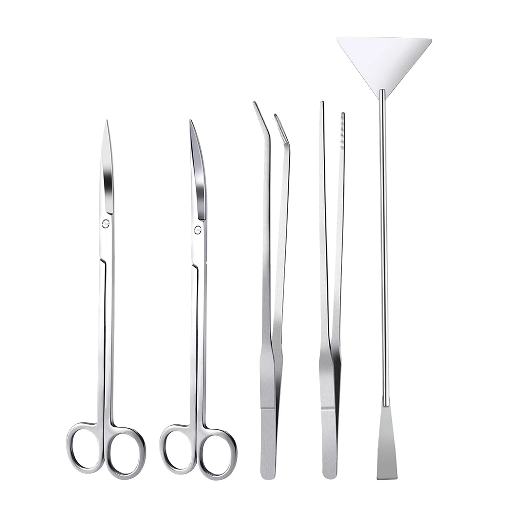 -Набор инструментов для аквариума aquascaping, 5 шт.: прямые ножницы, изогнутые ножницы, шпатель, прямые пинцеты, изогнутые пинцеты.