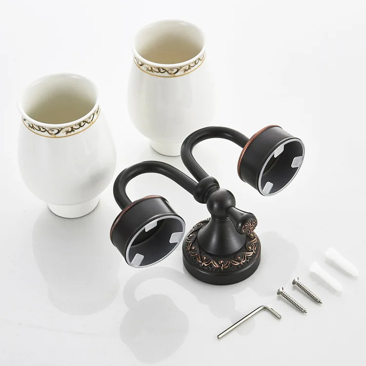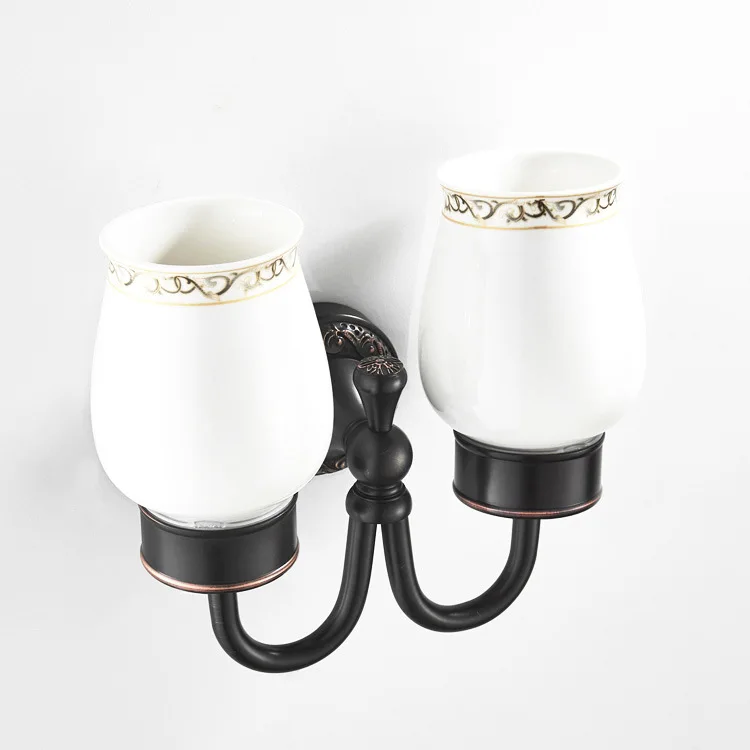 Портавос De Ceramica латунные античные Двойные подстаканники настенный держатель для зубных щеток Набор для ванной Черный Подставка для чашки Кружка стойка