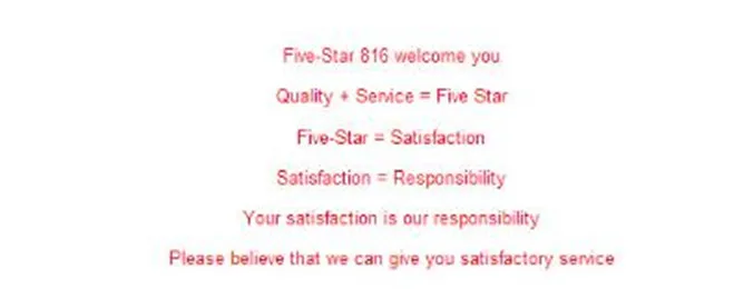 Самые выдающиеся клиенты: Управление целостностью-наша цель. Ваше удовлетворение является нашей главной движущей силой. Ваше удовлетворение-наша неустанная цель. Мы думаем о том, как сделать вас более удовлетворенными каждый день. Спасибо за ваше доверие и поддержку, желаю вам счастья и счастья каждый день.