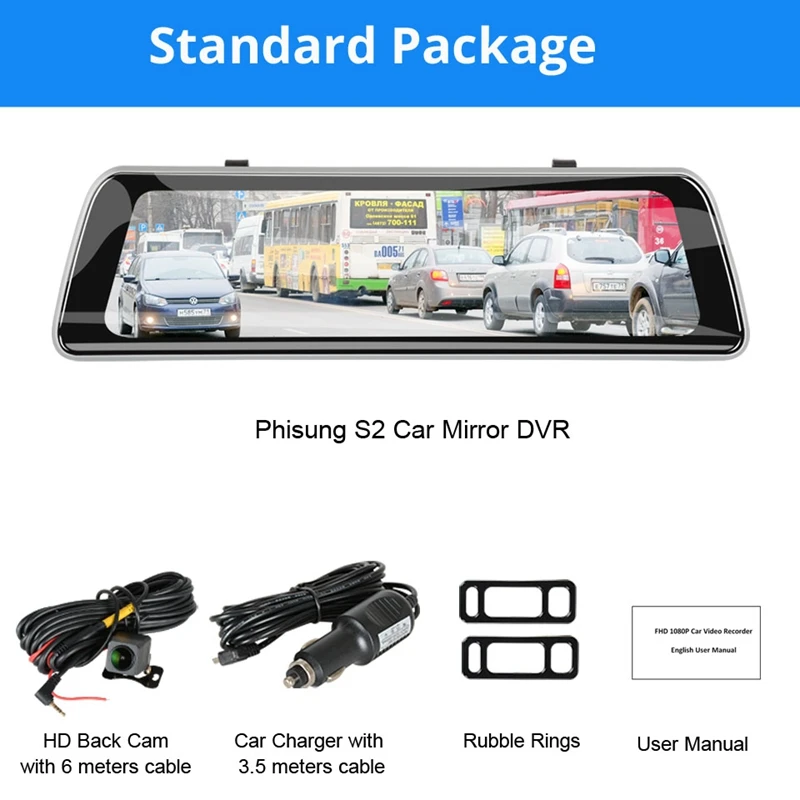 GPS регистратор: нет; Специальные Особенности: g-сенсор, светодиодный дисплей, двойной объектив, водонепроницаемый, циклическая запись, обнаружение движения, отображение времени и даты, с зеркалом заднего вида