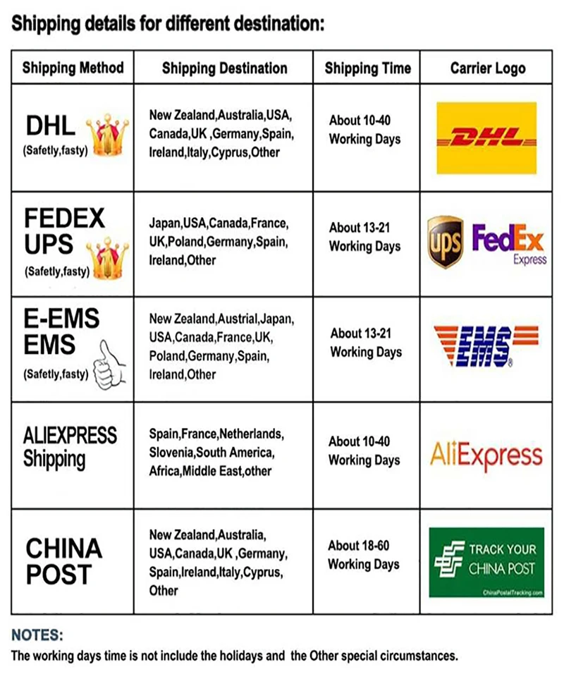 A:We usually ship according to the courier selected by the customer. However, for some remote areas, the buyer choose the logistics can't arrived, or the logistics company cannot transport normally for some reasons, or there are other faster express delivery but the buyer does not need to pay any more money, etc. We will send a message to inform the buyer,Ask buyers for their opinions,please remember to check Aliexpress message ".