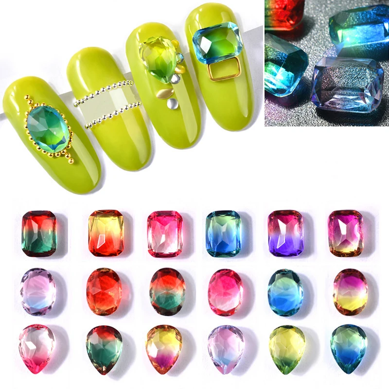 3D блестящие цветные стеклянные стразы для ногтей, стразы с острым основанием, стразы для дизайна ногтей, украшения драгоценных камней, аксессуары для маникюра