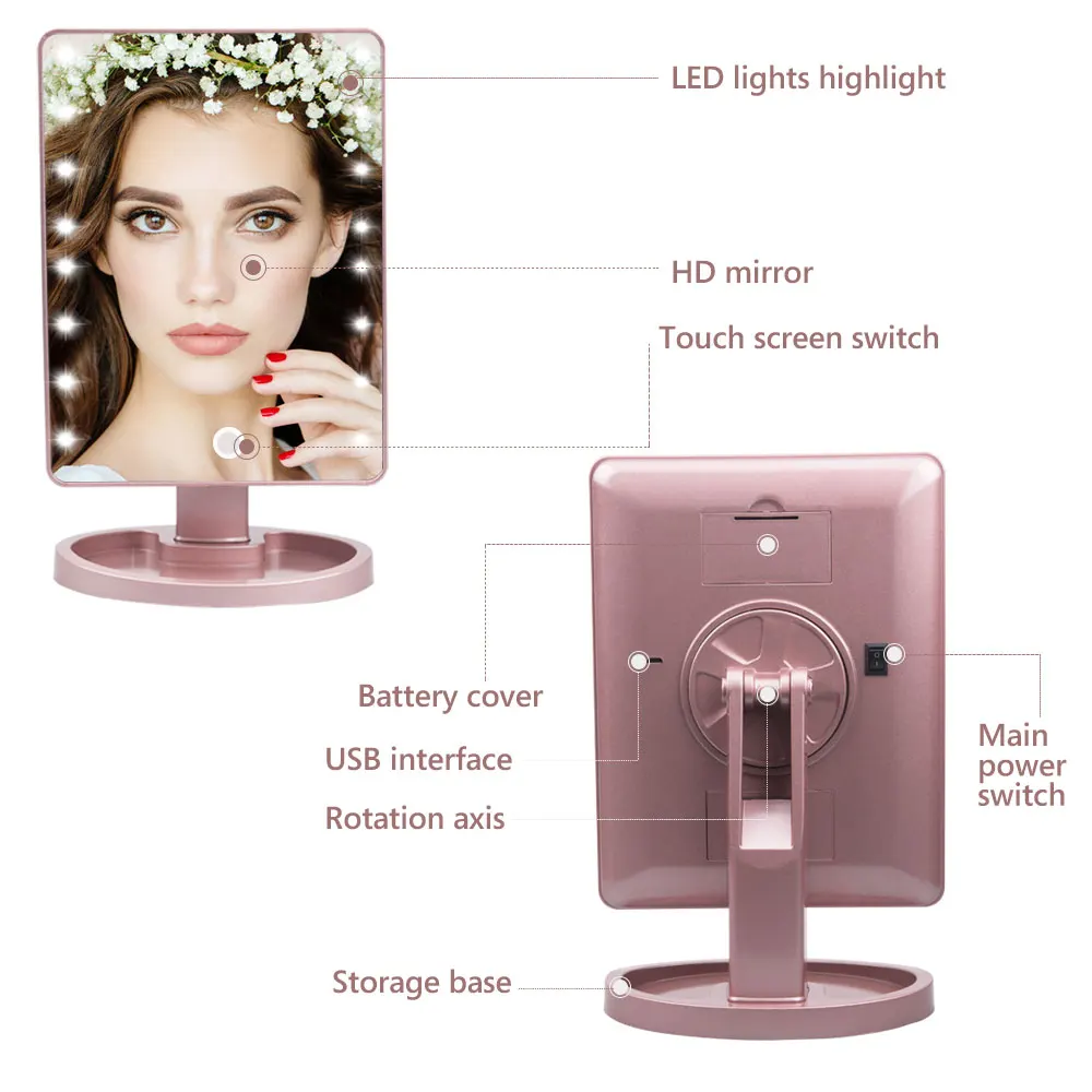 Особенности: Может стоять в плоском положении Используйте аккумулятор или usb-кабель Используемый материал не легко повредить Интеллектуальный переключатель с сенсорным экраном Открытый может быть остановлен под разными углами для использования Полный диапазон освещения без мертвого угла 16 светодиодный светильник, в темном месте может четко отражать ваш внешний вид Легкий в эксплуатации мощный выключатель, возможность адаптироваться под другой светильник, различный светильник окружающей среды. Может найти светильник, который вам нужен в сенсорном экране Все аксессуары: 1 x светодиодный косметическое зеркало 1 х USB кабель 1 x увеличительное стекло 1 губка для основы