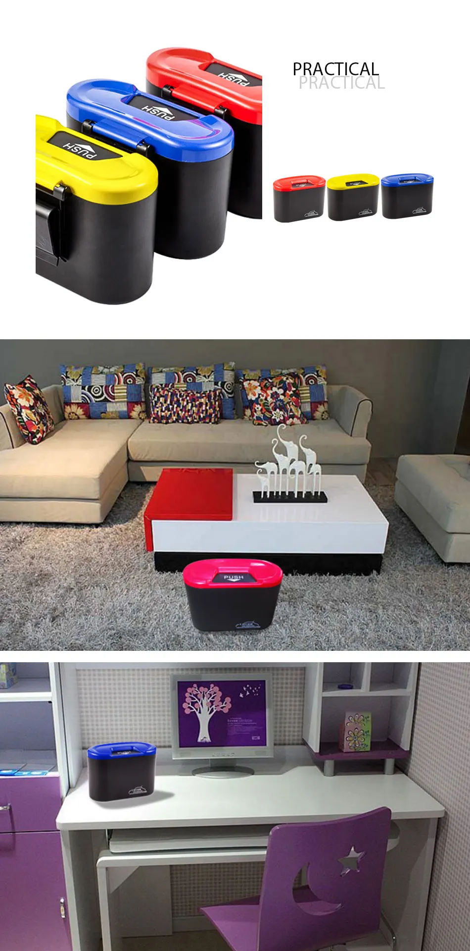 • Изысканный, маленький, новый и красивый, экологичный. • Изделия блестящие, яркие, тонкое мастерство, подчеркивают, что они разные. • Изготовлен из высококачественных экологически чистых материалов ABS (без запаха) для обеспечения качества и внутреннего воздуха. • Уникальный дизайн с откидной крышкой уменьшает запах мусора. • Емкость барреля, вы можете разместить две бутылки минеральной воды. • Более удобная конструкция крючка, загрузка и разгрузка. • Простой и элегантный стиль, не теряя изящества, дугообразный дизайн и множество модных цветов с идеальным сочетанием.