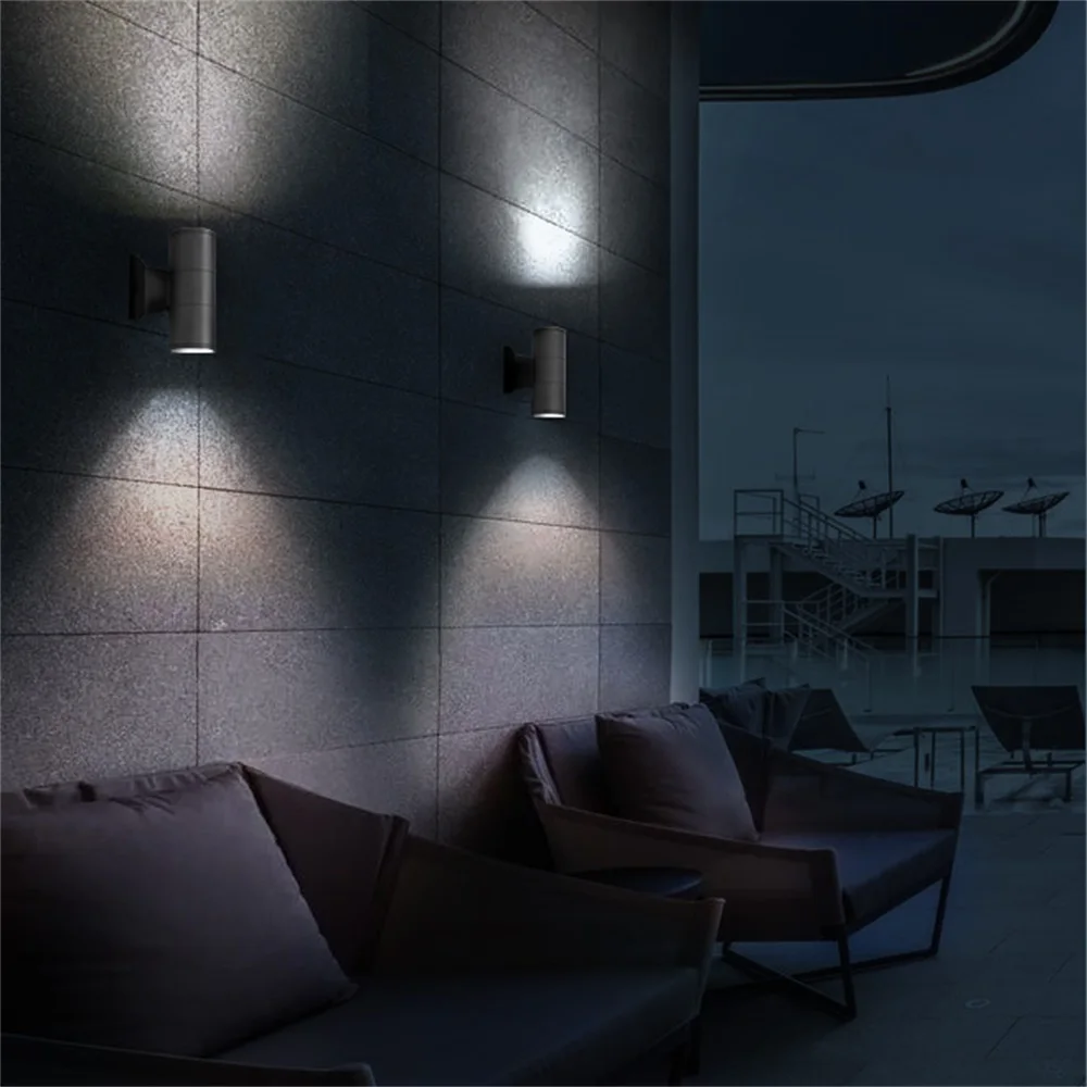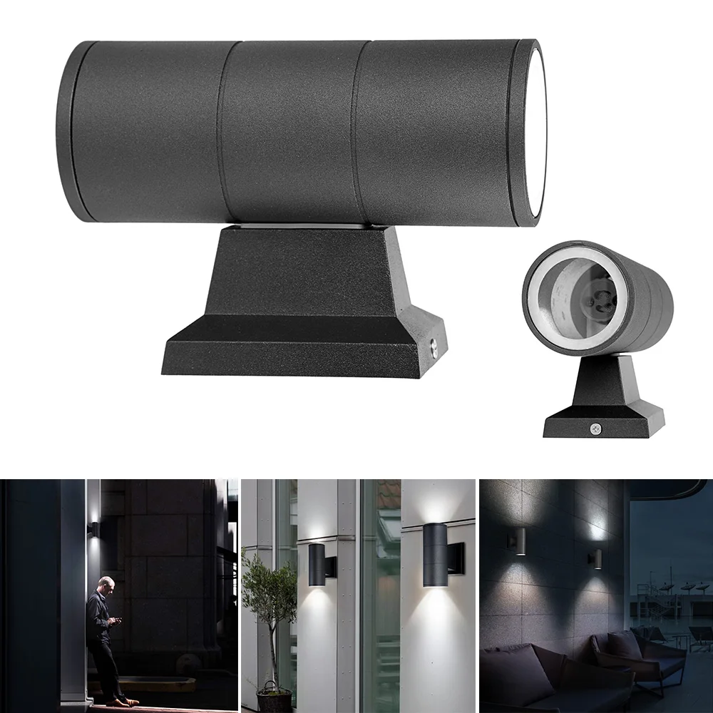 IVYSHION 2PCS Up And Down Wall Light Scrub Black Grey Outdoor Garden Door Lamp Waterproof Patio Lights Double Head Wall Light