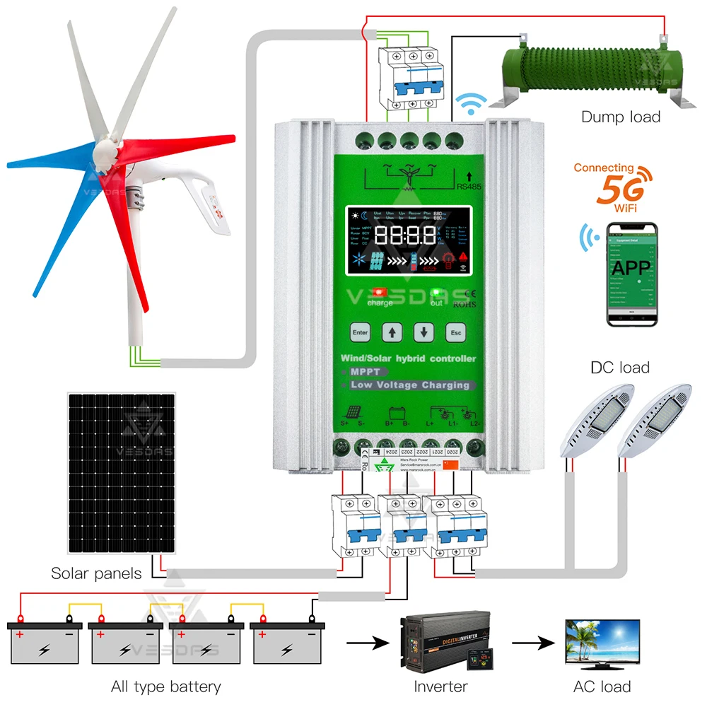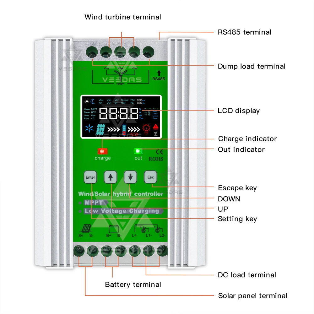 ● Алгоритм управления MPPT, используемый для зарядки вентилятора, обеспечивает зарядку MPPT при низкой скорости ветра.