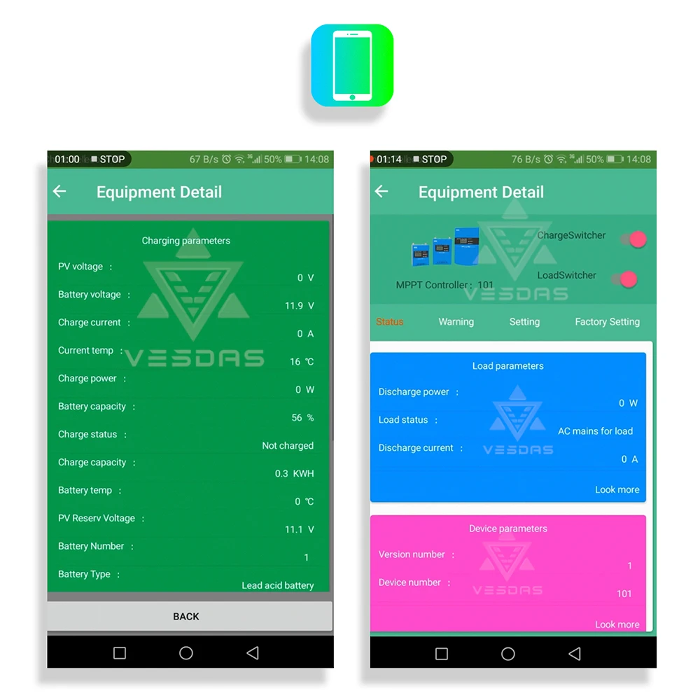 Контроллер принимает дизайн цветного экрана, информация о дисплее более полная, интерфейс дисплея более четкий, контроллер поддерживает модуль Wi-Fi и модуль GPRS для расширения и реализации облачного мониторинга приложений. Контроллер подходит для солнечной автономной системы, автоматически контролирует зарядку и разрядку, и может быть применен в основных станциях связи, бытовых системах, системах уличного освещения, полевом мониторинге и других областях.