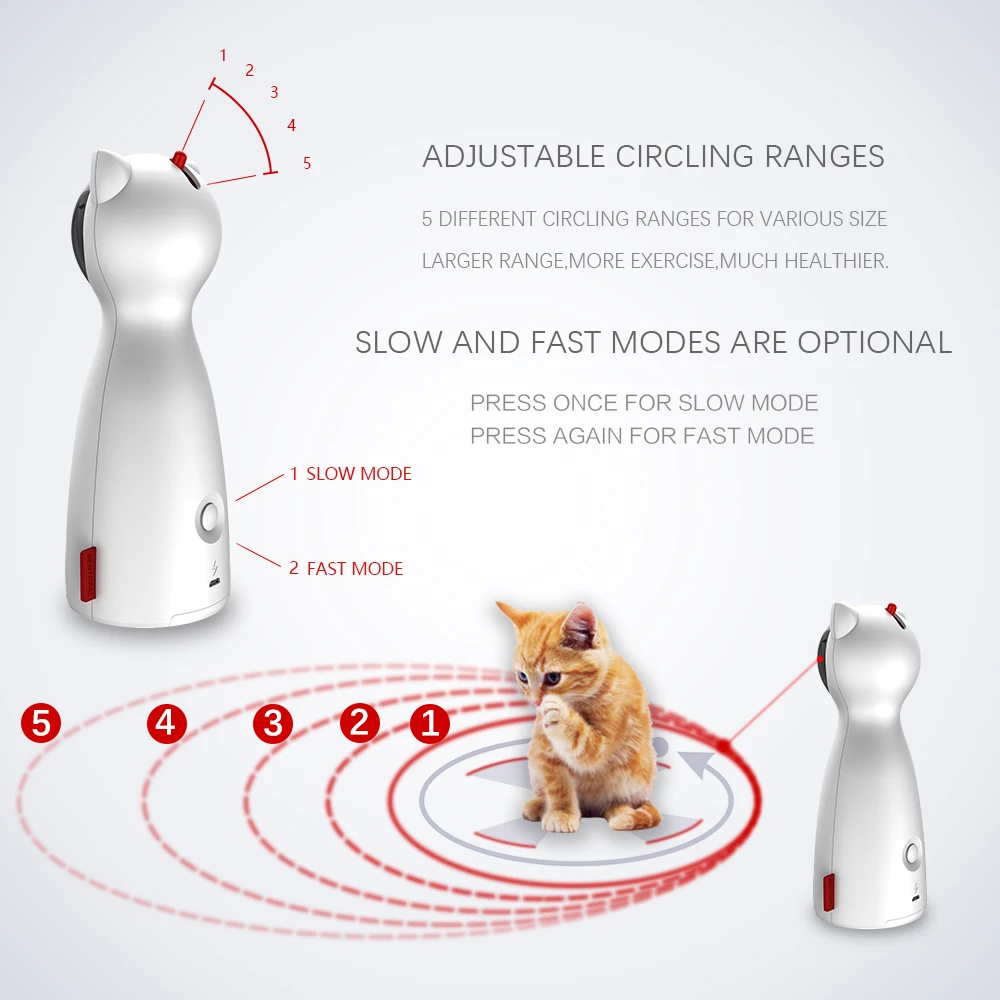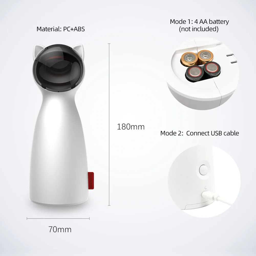Захватывающий светильник перемещается случайным образом через полы и стены, что привлекает естественный охотничий инстинкт кошек.