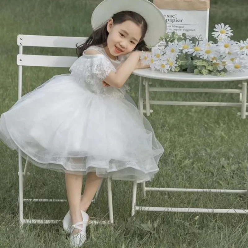 Роскошные платья с цветочным узором для девочек, для крещения, кружевные, с кисточками, с открытыми плечами, для первого дня рождения, вечерние, свадебные платья принцессы для маленьких девочек, для причастия