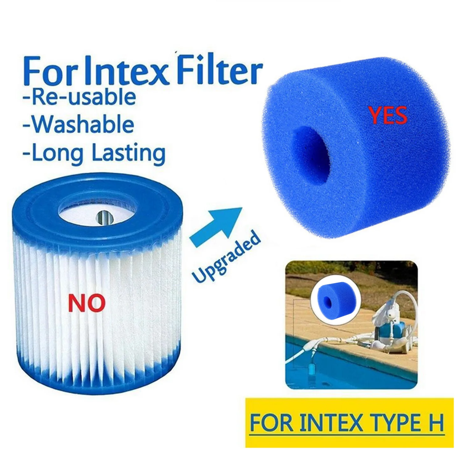 2 шт. фильтр для бассейна картридж из пены многоразовый моющийся фильтр для бассейна Губка Очиститель пены для Intex тип А очистка RepalcementUSD 2,82/Шт.