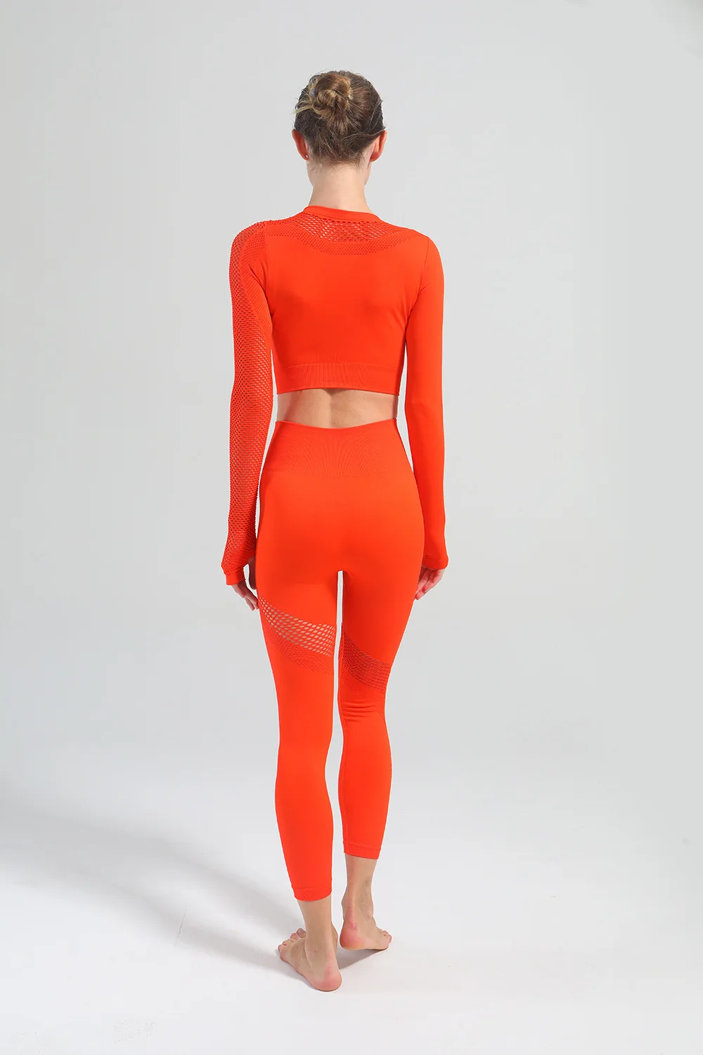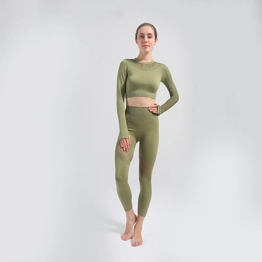 Подробнее о продукте: спортивный бюстгальтер с одним плечевым ремнем можно снять. Укороченный топ с длинными рукавами и Леггинсы для йоги с вырезами. Мягкая и эластичная ткань.