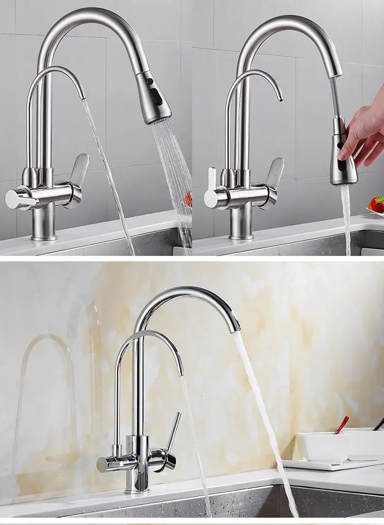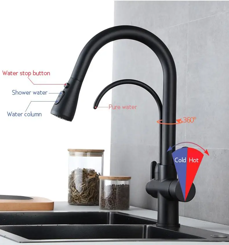 Название позиции: кухонный кран для ванной комнаты (вытяжной/фильтрующий кухонный кран) Установка: установка на бортике отверстие: одно отверстие отделка: хром/черный/Матовый никель Материал корпуса смесителя: кран Материал ручки смесителя: размер цинка: как на фотографии вес нетто: как на фотографии Упаковка: весь комплект