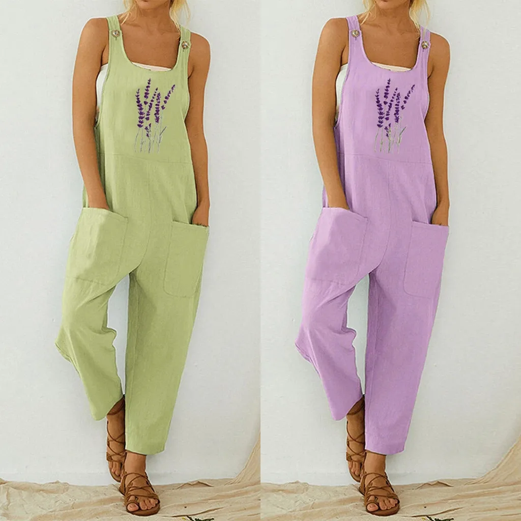 Женский Повседневный комбинезон с карманами и принтом в стиле бохо, длинный комбинезон на бретелях, комбинезон с пуговицами