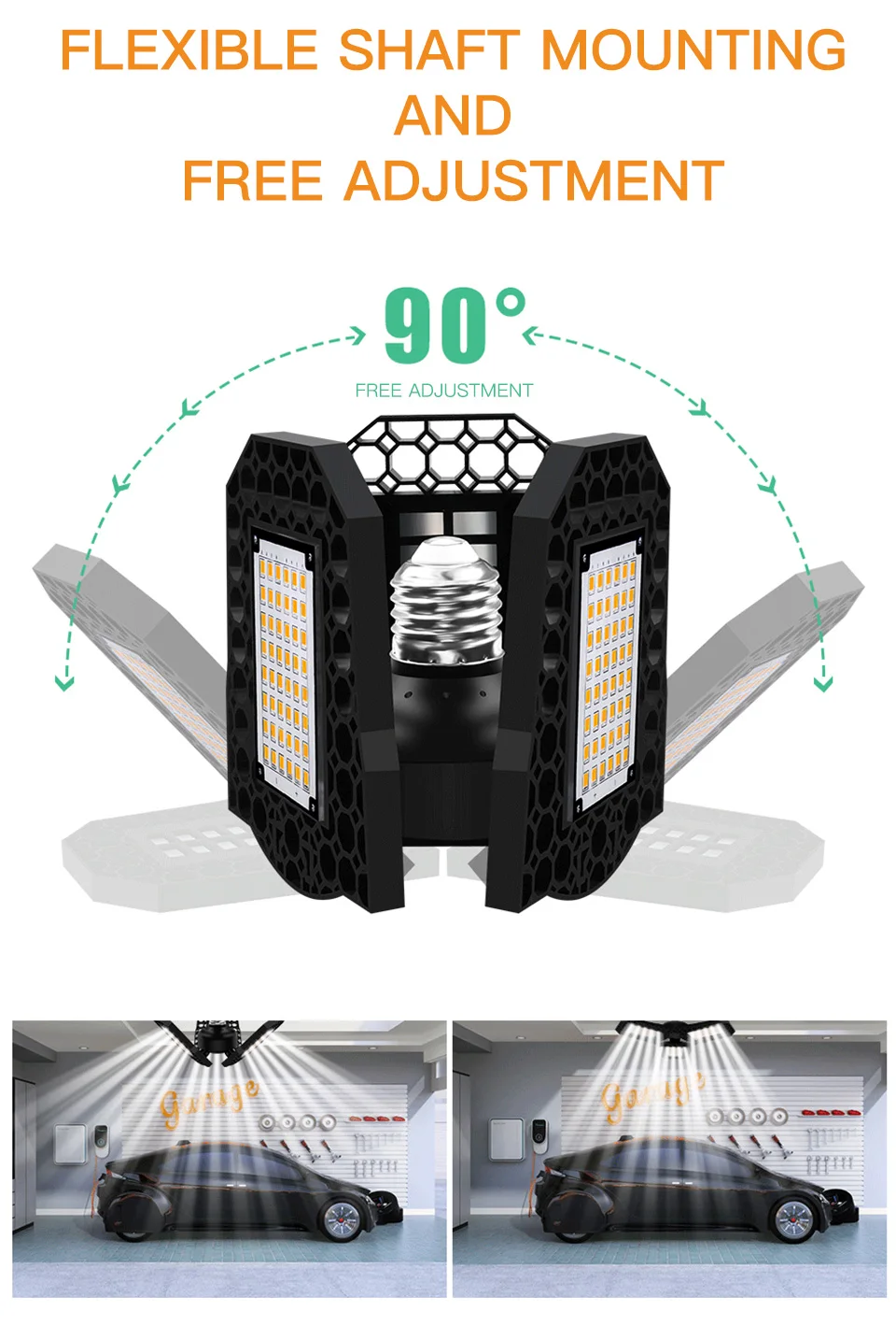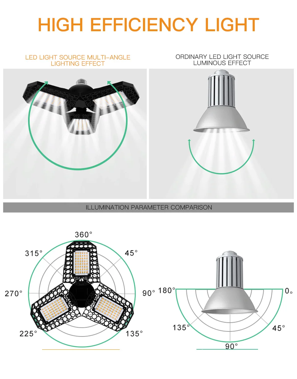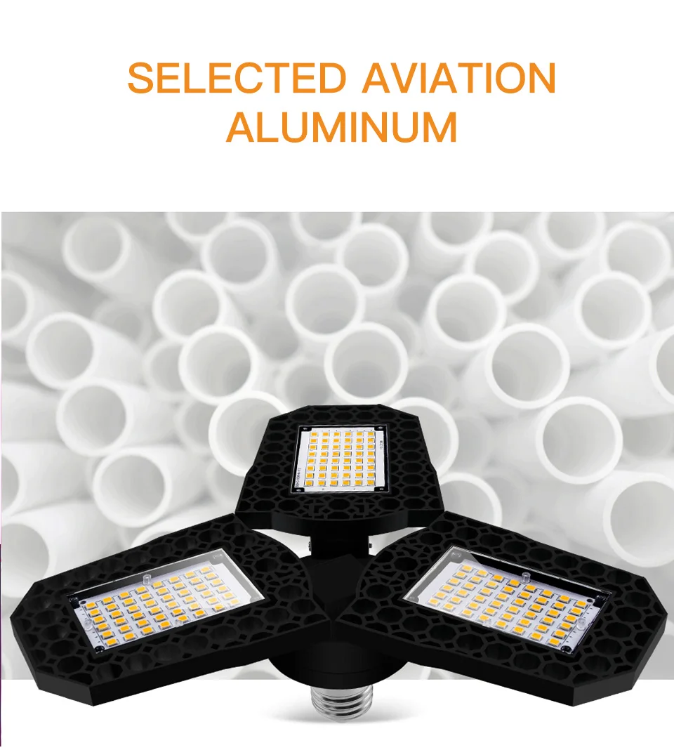 Материал: алюминиевый сплав Мощность и яркость: 40 Вт 60 Вт 80 Вт, 6000 люмен Цветовая температура: 6000K 3000K Индекс цветопередачи: CRI>80Ra Средний срок службы лампы: 55000 часов Тип цоколя: Цоколь E27 Подходит для: внутреннего специального освещения (не водонепроницаемый)