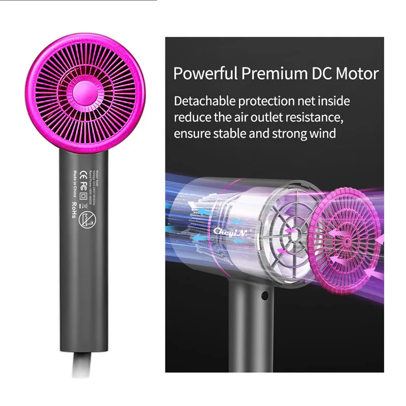 1. Более 1800 Вт электродвигатель постоянного тока для легкого салон прически. Высокая концентрация отрицательных ионов для уход за волосами, помочь снятия статического и уменьшая спутывание 2. У нас есть 12 лопасти вентилятора фена и он оснащен 20000 об/мин Мощный двигатель постоянного тока для того, чтобы обеспечить мощный воздушный поток и быстро сохнет, значительно повысить скорость ветра и объем 3. Изготовлен из охраны окружающей среды материалы, значительно уменьшает вес изделия; Туловище выглядит очень легкий и компактный, легко носить с собой. И более длинные провода делают его простым в использовании. 4. Аромат планшетов оснащены в ветровое сопло, аромат может быть отправлена вам в тех случаях, когда фен работает, но если вы чувствительны к ароматом, в котором вы можете воспользоваться этой маленькая коробка для специй из сопла 5. Три Шестерня во все тяжкие: мягкий и прочный, холодного ветра, и может быть включен по своему желанию. Двойная защита от перегрева устройство может эффективно предотвратить перегрев фюзеляжа из может привести к поломке фен для волос, а также чтобы продлить срок службы.