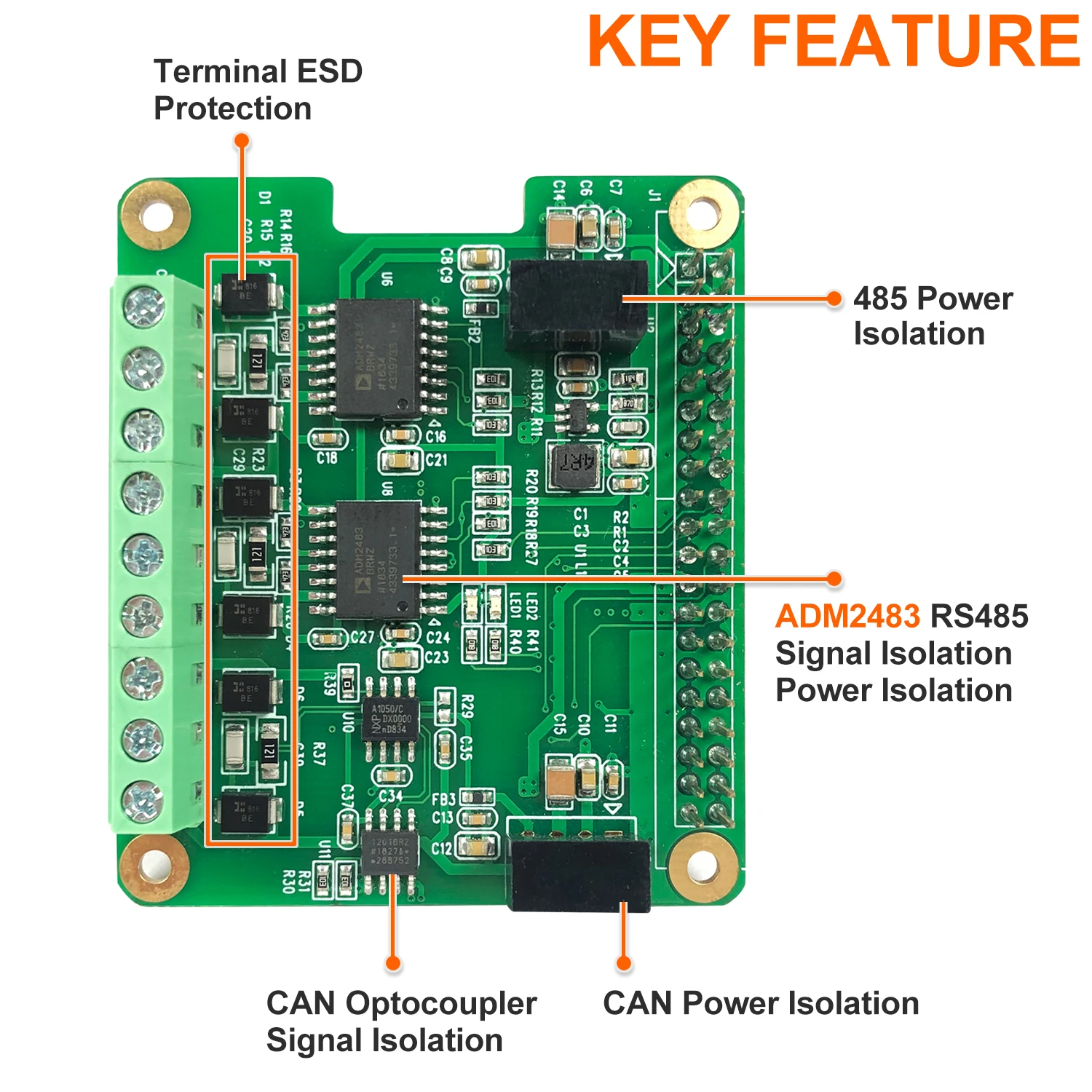 Модуль RS485 CAN совместим с Raspberry Pi 4 / Zero W / 2B / 3B / 3B +. Используется только небольшое количество GPIO, а остальные булавки позволяют работать для других расширенных функций. • Изоляция источника питания и передачи сигнала, Встроенный всплеск и защита от ЭСР. Бортовое индивидуальное сопротивление клемме 120 Ом. • Может работать-бортовой контроллер MCP2515 через SPI интерфейс, бортовой высокоскоростной может приемопередатчик, бортовой цифровой изоляции ADUM1201BRZ, скорость связи 20Kbps-1Mpbs может быть запрограммирован произвольно. • Светодиод с функцией управления RS485 через UART, полудуплексную связь, поддерживает автоматическое управление TX/RX без программирования, встроенный SPI к RS485 SC16IS1752. Электрической изоляции данных ADM2483. • Мы предлагаем демонстрацию C/Python и демонстрацию Modbus communication. Для получения дополнительной информации, пожалуйста, обратитесь к нашей вики (посмотрите ссылку на страницу цвета поставляется с товарами).