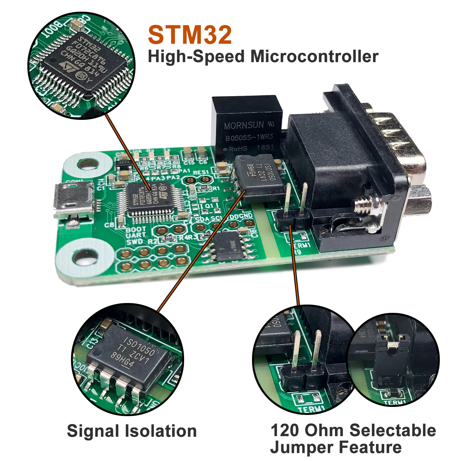 Модуль конвертера USB to CAN совместим со всеми сериями Raspberry Pi/Jetson Nano/Tinker Board/с любым одноплатным компьютером, настольным компьютером и ноутбуком. • Модуль USB может поддерживать систему Windows, Mac OS и Linux (Raspbian, Ubuntu). • Подключайте и играйте в usb-устройство. Внешняя мощность не требуется. Поддержка более широкой скорости передачи данных, от 20 кбит/с до 1 Мбит/с можно программировать произвольно. Поддержка спецификации CAN bus 2.0A и 2.0B. • Обеспечивает изоляцию напряжения 3000 В и изолированную защиту от ЭСР 2500 В на сигнале pins.120 Ом резистор выбирается функция перемычки. • Предоставьте демодоранты C/Python с разъемом-CAN для Raspbian(Linux), динамической библиотеки и демонстрации с IOUSBKit для Mac Os.