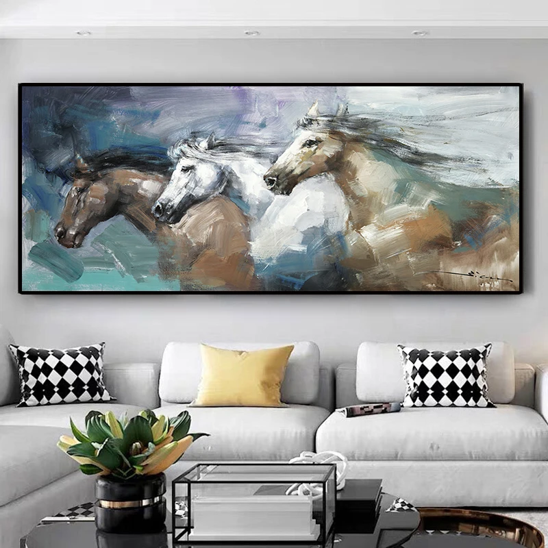 Настенный постер с лошадью для бега, Расписанная вручную картина маслом, напечатанная на холсте, абстрактная картина фотографии животных на стену для декора гостиной