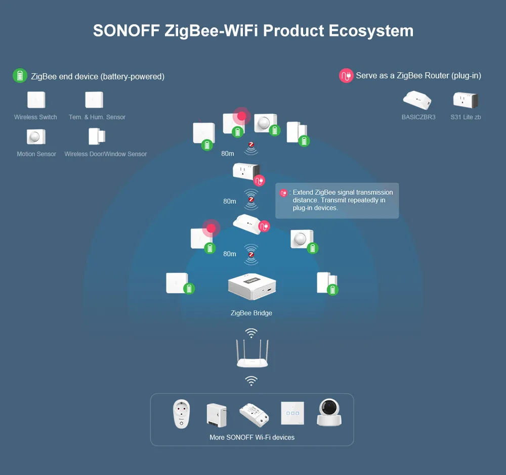 Itead SONOFF SN-02 ZigBee датчик температуры и влажности в реальном времени монитор через приложение e-WeLink работает с SONOFF ZigBee Bridge IFTTT