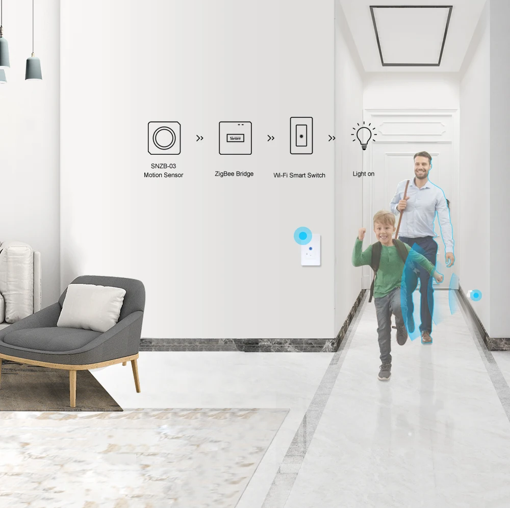 Itead SONOFF SNZB-03 ZigBee датчик движения оповещение через приложение e-WeLink работа с ZigBee мост умный дом безопасности